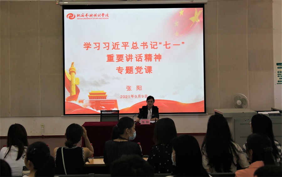 校党委书记张阳在学习习近平总书记“七一”重要讲话精神专题党课上全面阐释了“七一”重要讲话的重大意义、丰富内涵、核心要义、实践要求,她强调要把学习好、宣传好、贯彻好习近平总书记“七一”重要讲话精神作为当前和今后一个时期的首要政治任务。要旗帜鲜明讲政治,增强“四个意识”、坚定“四个自信”,做到“两个维护”;坚持不懈抓好理论武装,加强思想政治建设,在实践工作中不断增强政治判断力、领悟力、执行力;深化“党建领航工程”,切实加强和推动基层党组织的发展,培养教育“尖兵”干部队伍;深入推进全面从严治党,全面加强党的建设,推动学校党建工作更上新台阶。