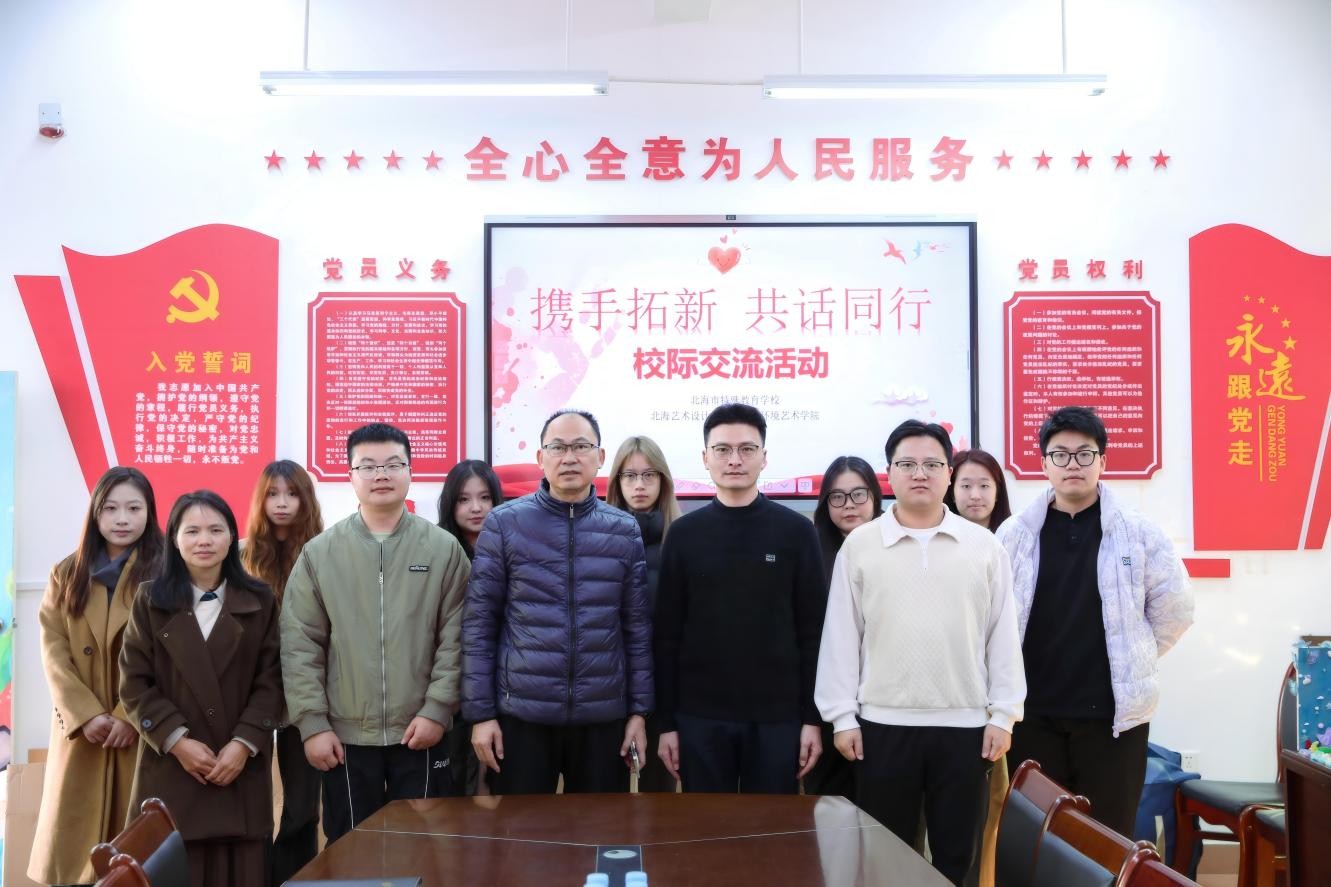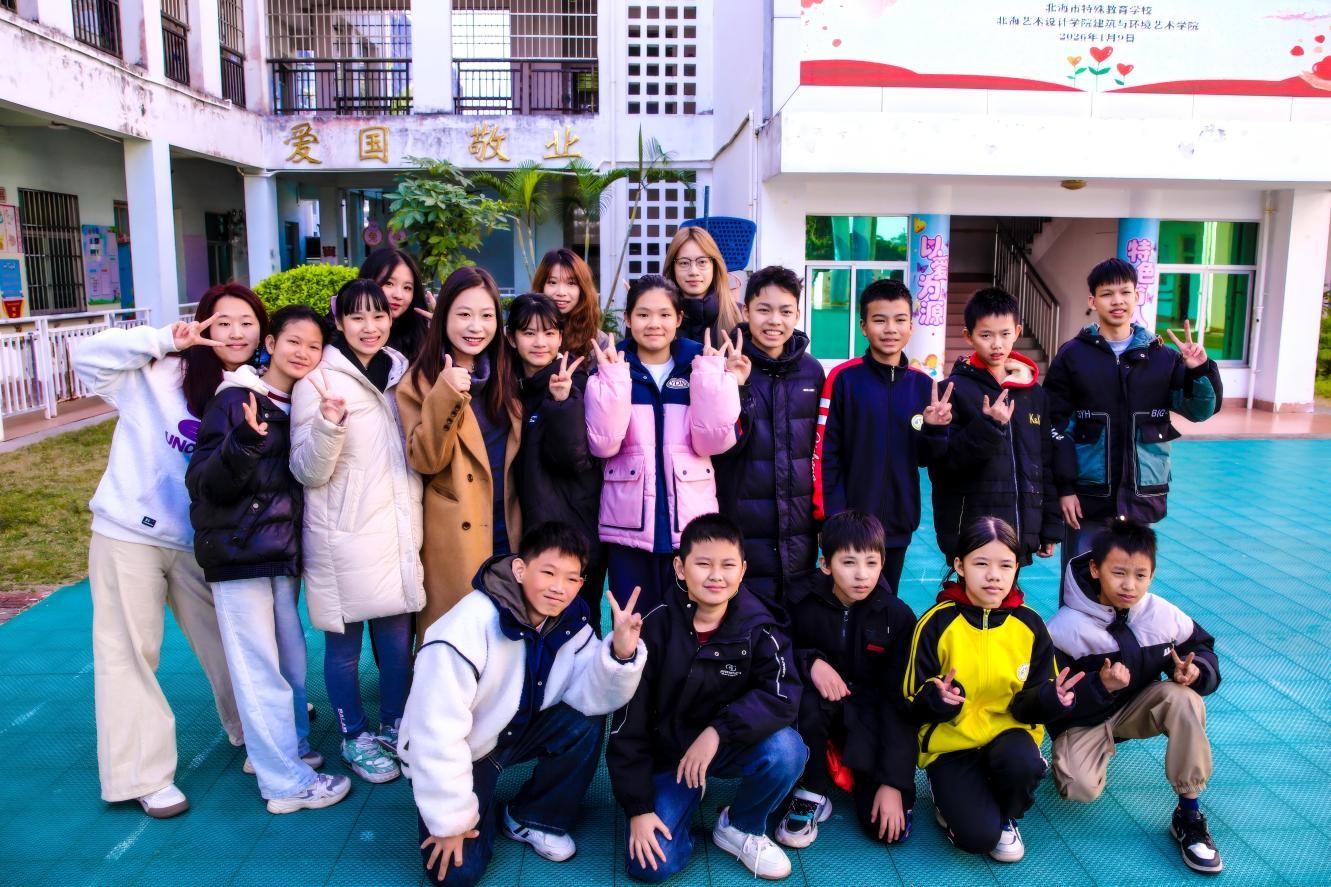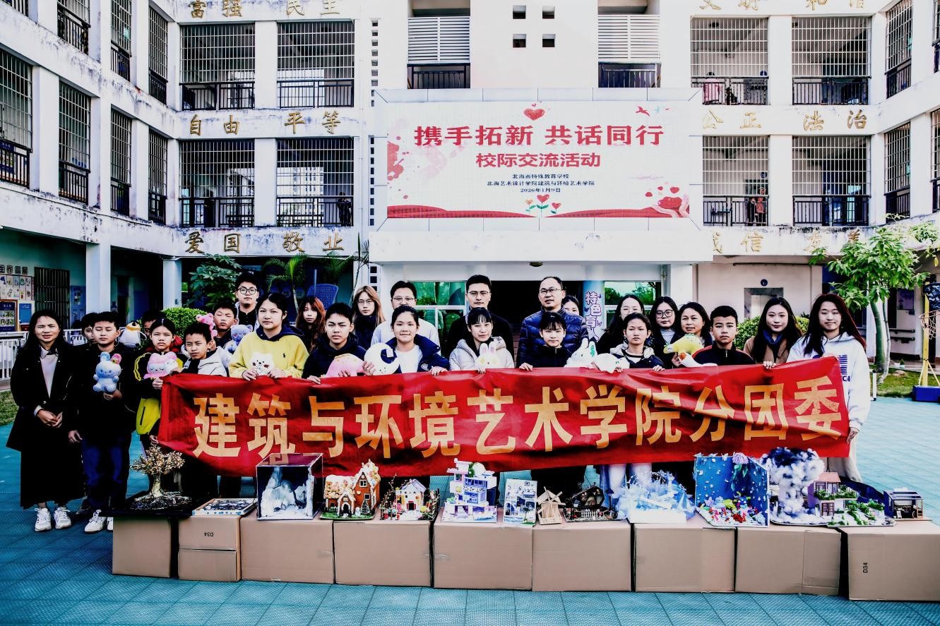 2026年1月9日,为深化校际合作、助力特殊教育发展,北海艺术设计学院建筑与环境艺术学院副院长张乐平、分团委书记赵晓盼带领同学们,走进北海市特殊教育学校开展暖心交流及捐赠活动。北海市特殊教育学校校长林国庆、学生发展中心主任何美珍、课程发展中心主任邓闯全程陪同参与。