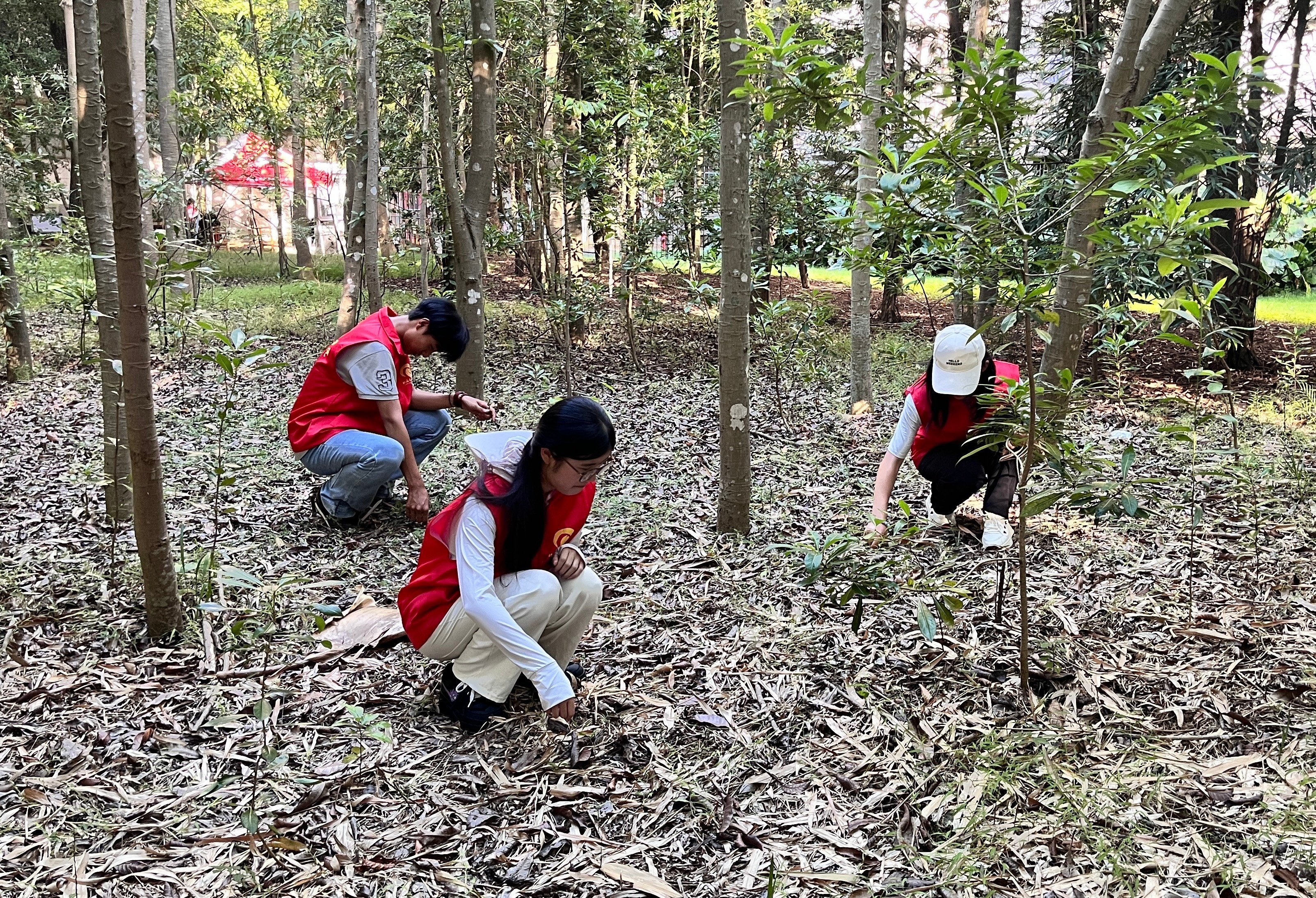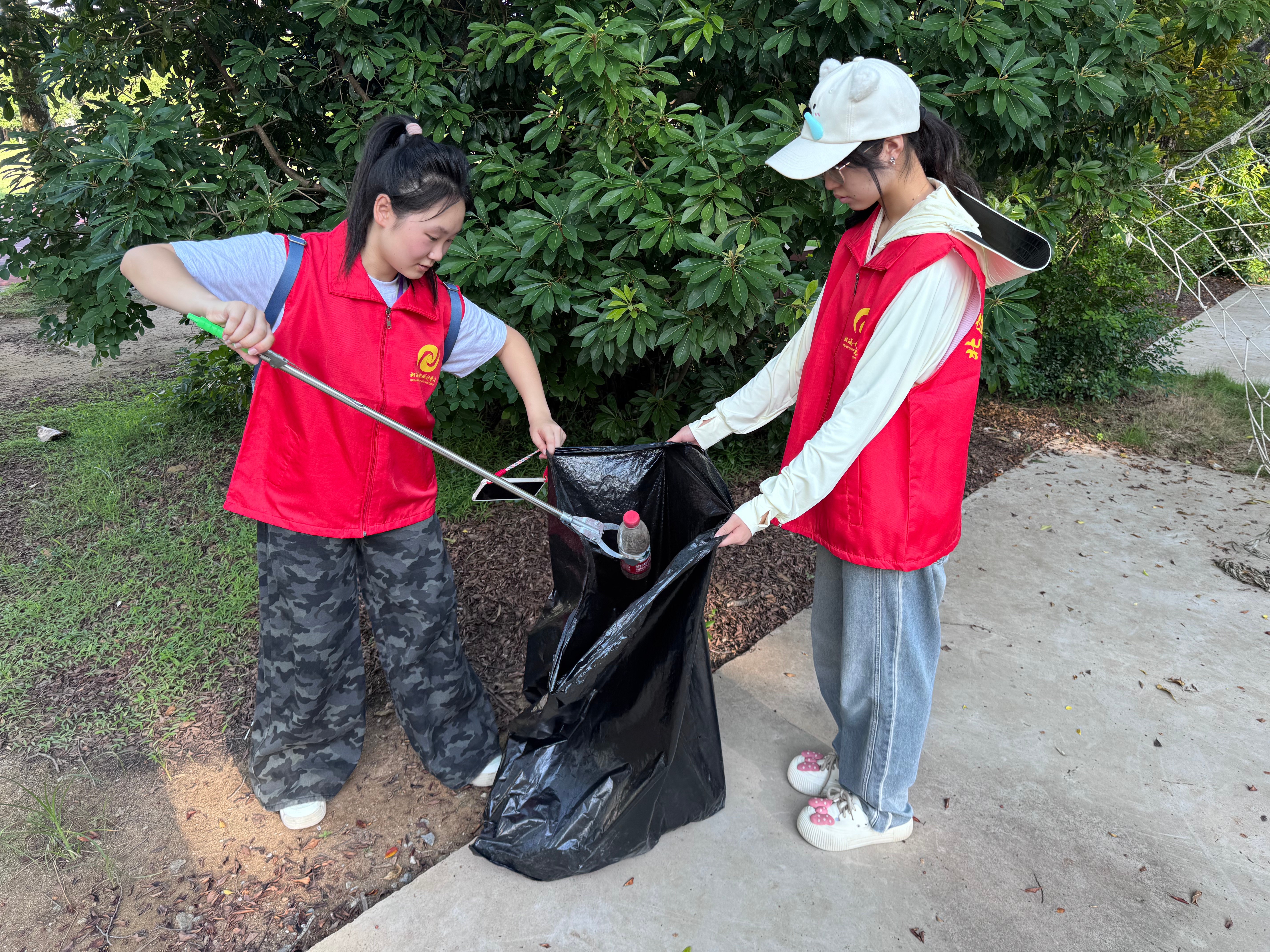 活动启动后,志愿者按预先分组分头行动。垃圾清理组携带垃圾夹、垃圾袋等工具,对校园道路两侧、绿化带间隙、操场周边等区域进行全面清扫,将散落的纸屑、塑料杂物、枯枝落叶逐一夹起装入垃圾袋,彻底清除卫生死角;杂草清除组则俯身作业,拔除树边杂乱生长的杂草,既提升了校园绿化景观整洁度,又压缩了蚊虫栖息空间,为清爽校园环境筑牢基础。