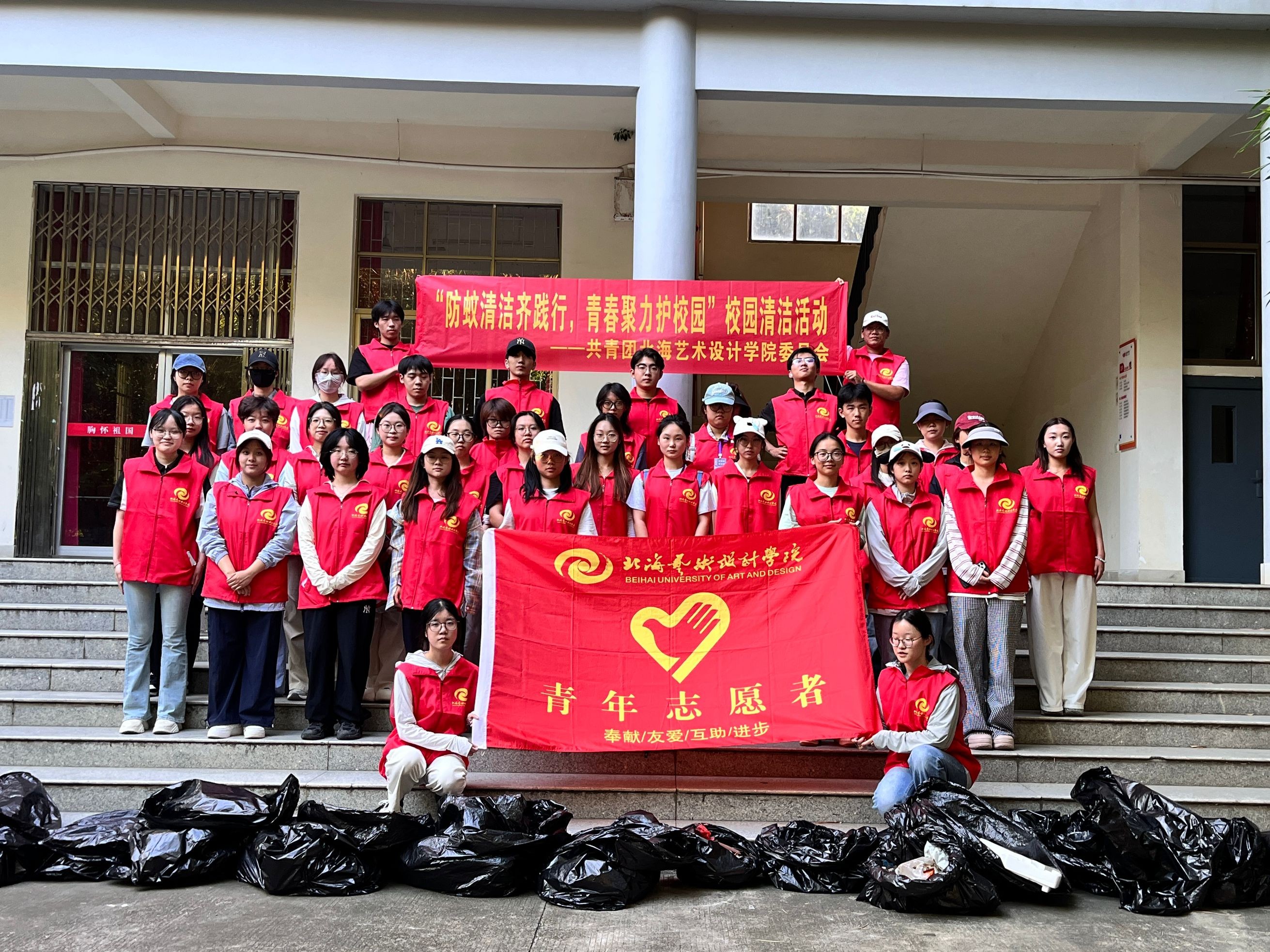 为营造整洁舒适的校园环境、减少蚊虫滋生,保障师生日常校园生活,9 月 13 日下午,我校青年志愿者协会组织 40 余名志愿者,在东校区开展 “防蚊清洁齐践行,青春聚力护校园” 校园清洁活动。