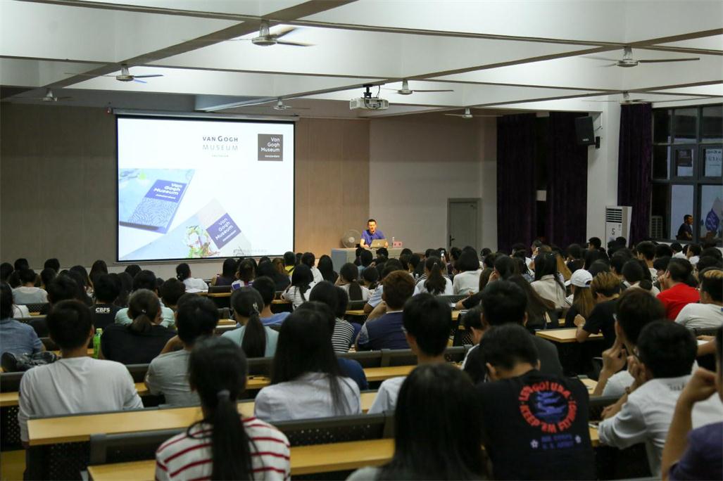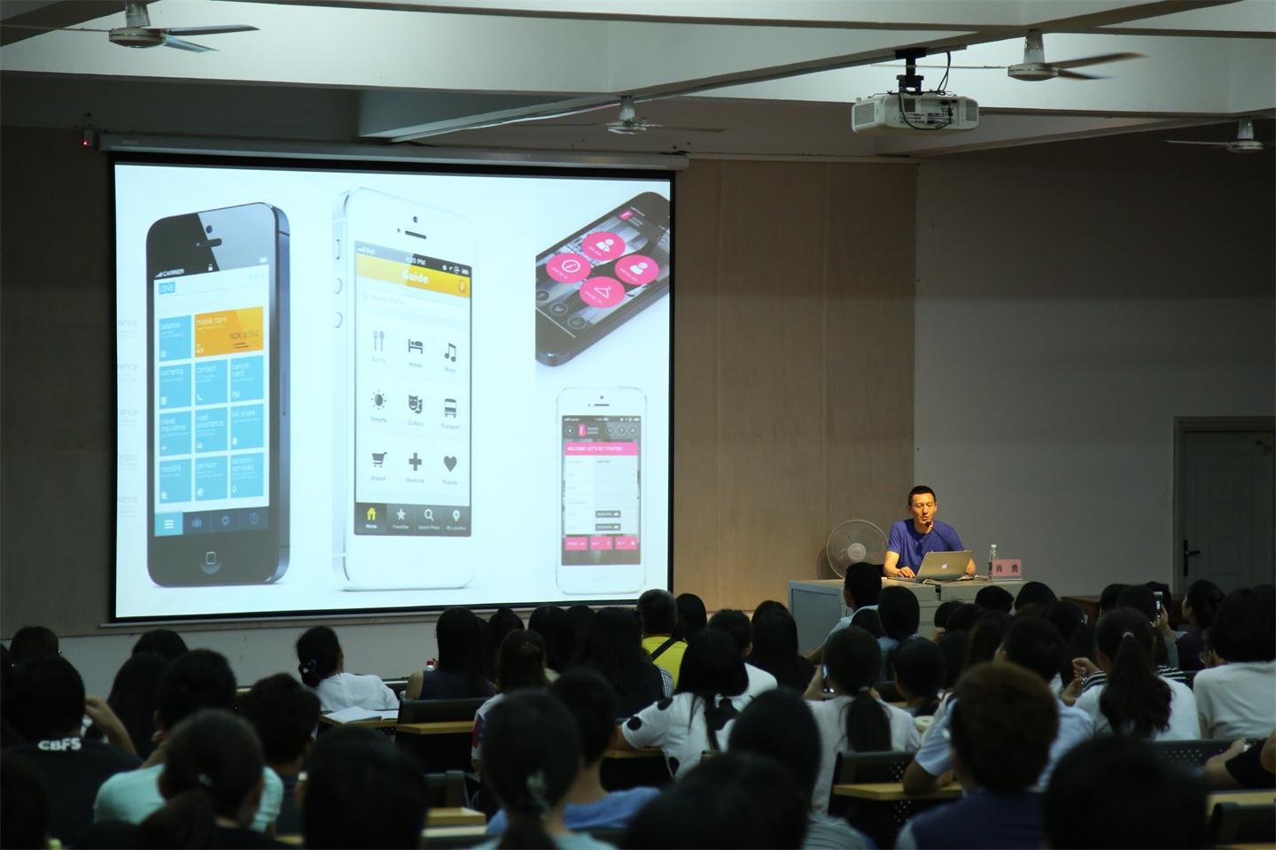肖勇教授放映了大量的图片和视频资料,他向同学们简要介绍了“设计”和“视觉”的概念以及作用。他指出,随着现代信息社会的变化和不同行业的融合,设计早已不再局限于传统的传播模式,而是朝着空间化和多媒体化的方向发展,他勉励同学们多去开阔眼界,打开思维,不断提高自身的审美品位,使自己的设计不仅能打动人们的眼睛,更能走进人们的心里。