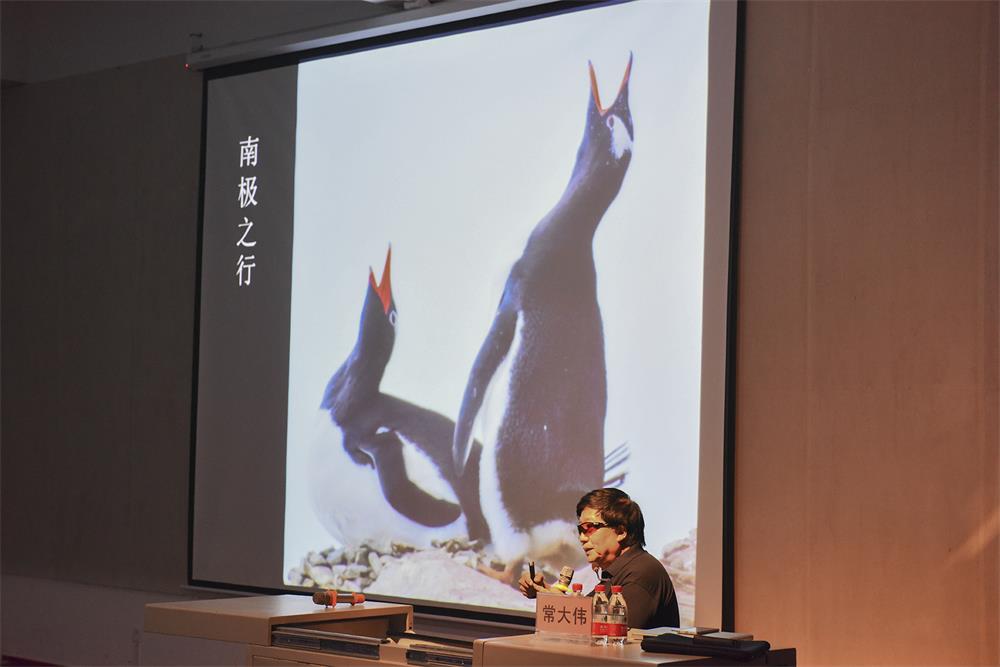 随后,常教授展示了南极东非之行中所拍摄的大量动物和风景图片,并幽默诙谐地讲述了途中的所见所闻,给现场观众带来了一场震撼心灵的视觉盛宴。常教授介绍到,南极的生态环境非常良好,是零污染的。从南极到东非,每一个角落都宛若一幅幅细腻而壮丽的风景画,生活于那里的动物代代繁衍,生生不息,构成了丰富的生物世界。