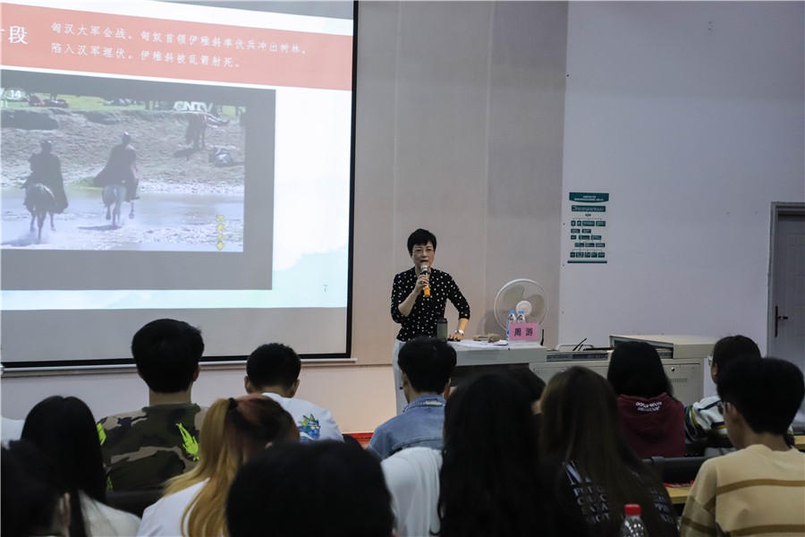 周游教授以边塞诗为例,讲述环境也是感情的一种表现,边塞诗人的爱国情怀值得赞颂,希望同学们尊重历史,将军魂、爱国之情融入心中,认真领悟诗魂,了解作品精神。以情发音。