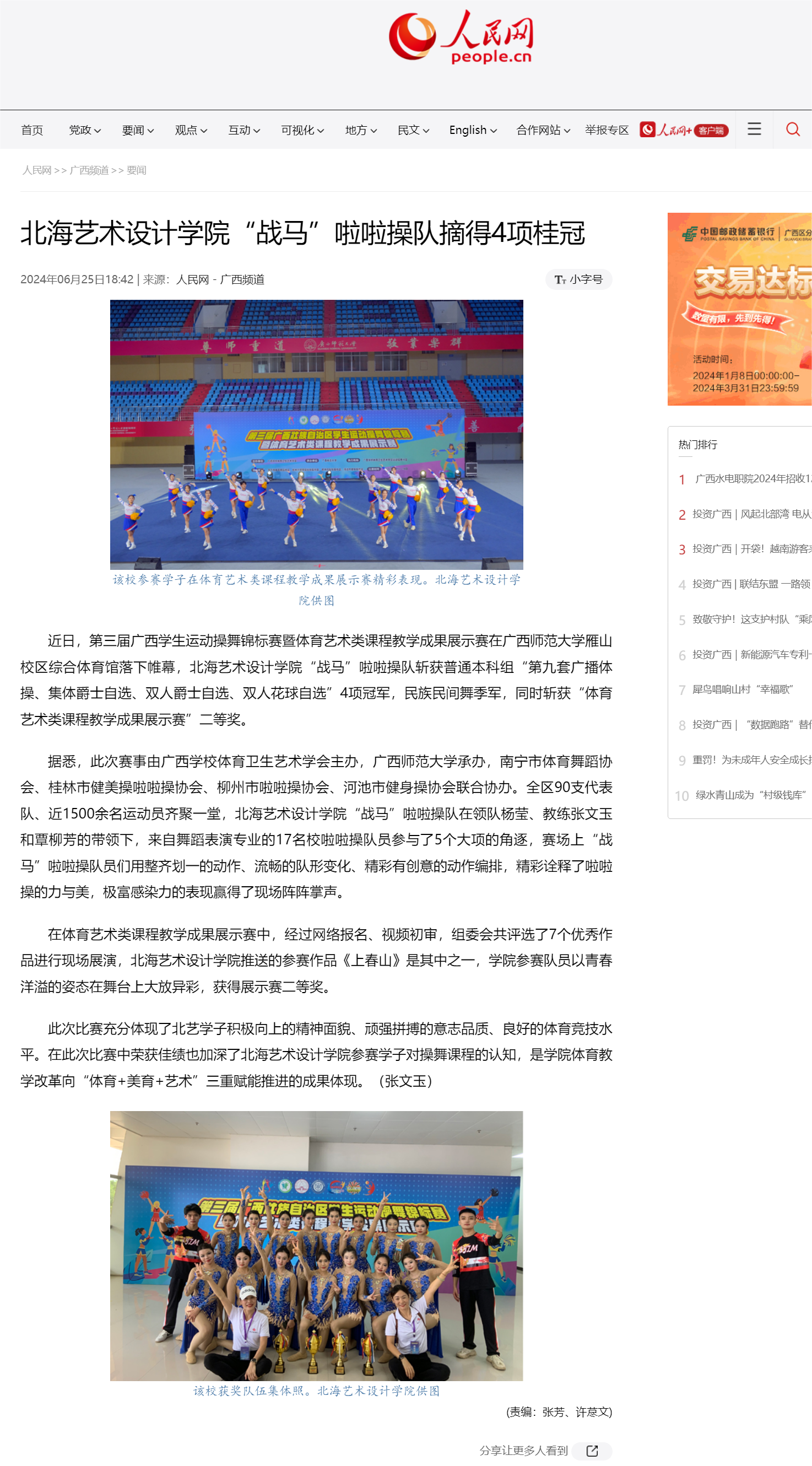 人民网:北海艺术设计学院“战马”啦啦操队摘得4项桂冠