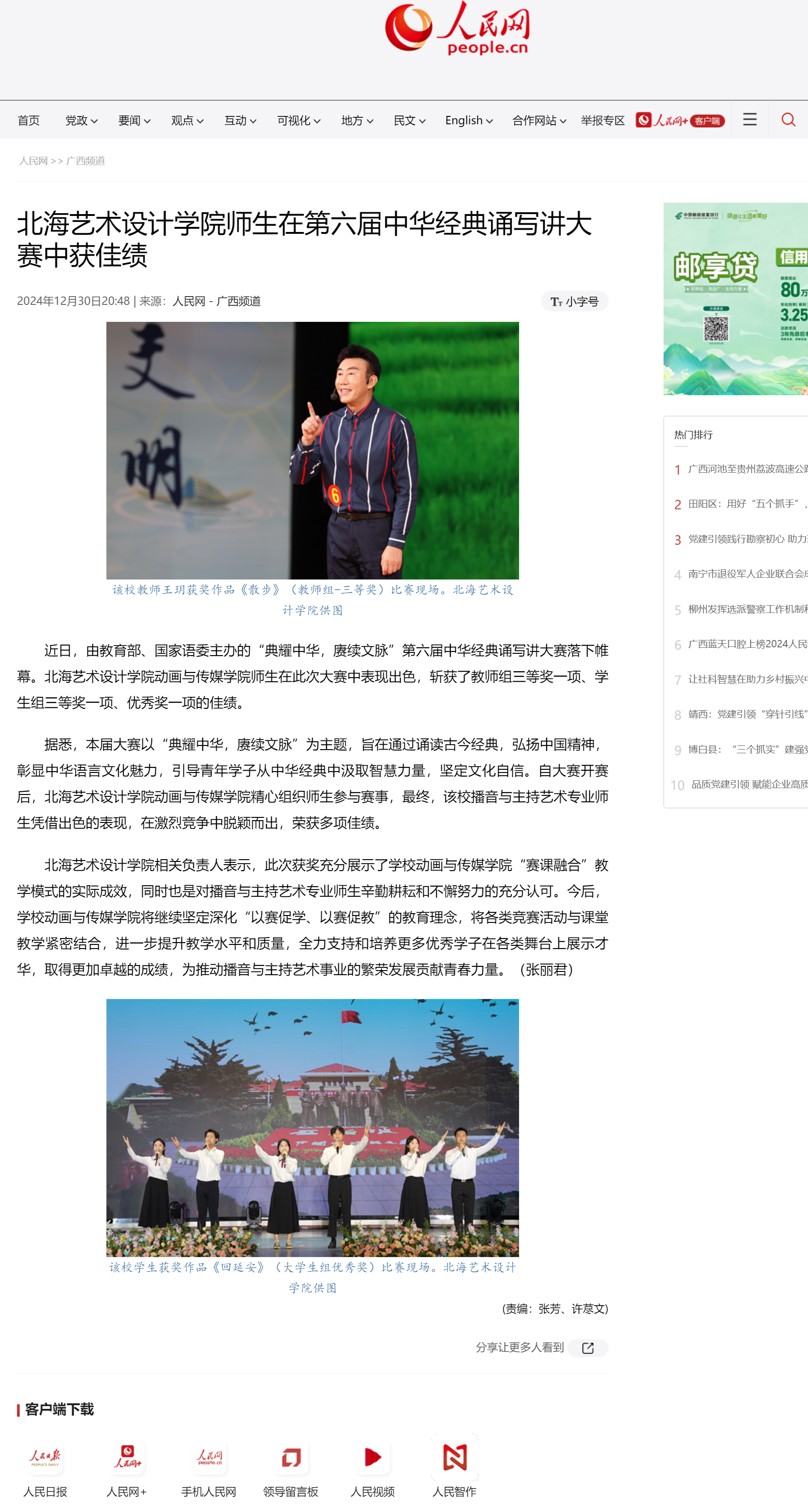 人民网:北海艺术设计学院师生在第六届中华经典诵写讲大赛中获佳绩