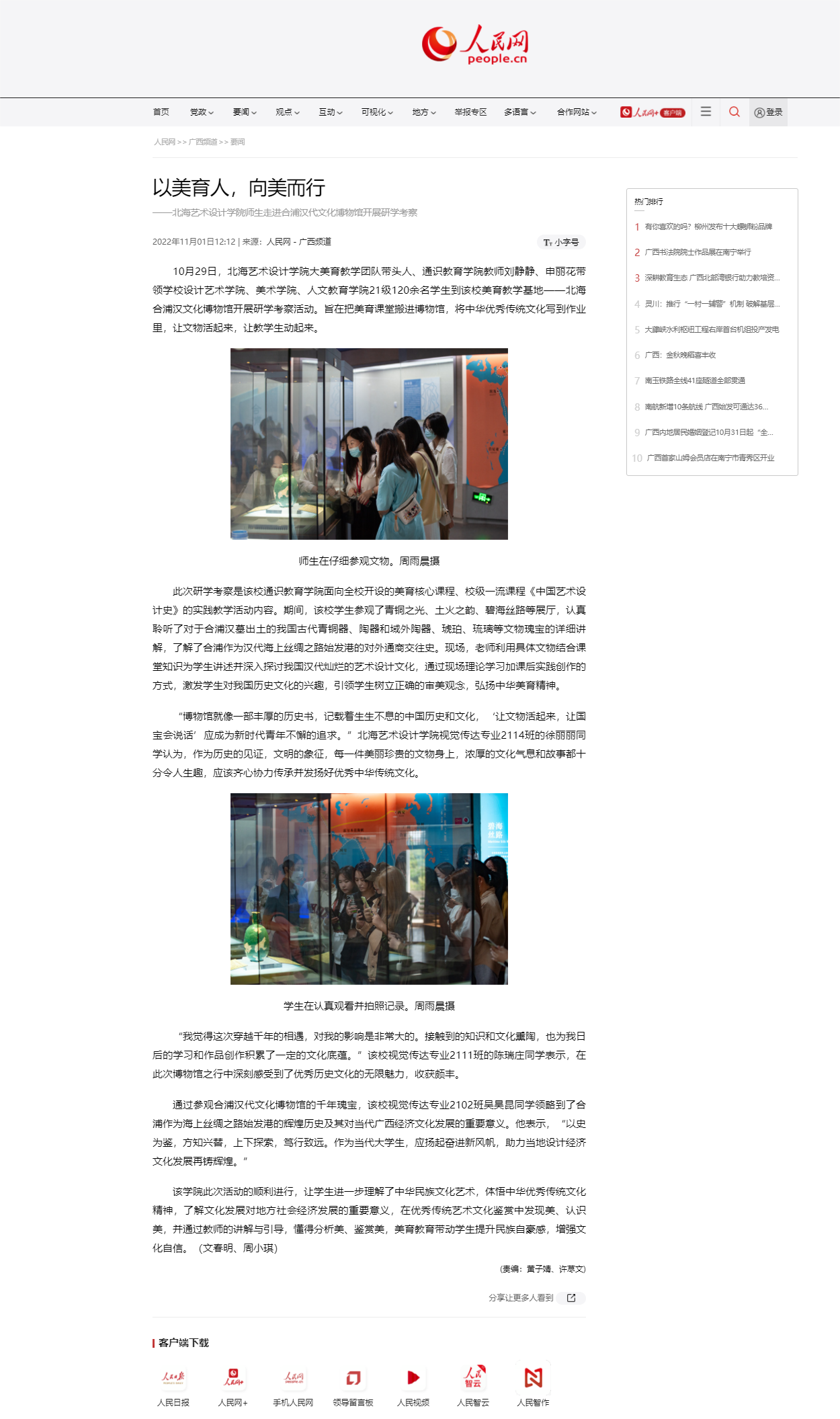 人民网:以美育人,向美而行 ——北海艺术设计学院师生走进合浦汉代文化博物馆开展研学考查