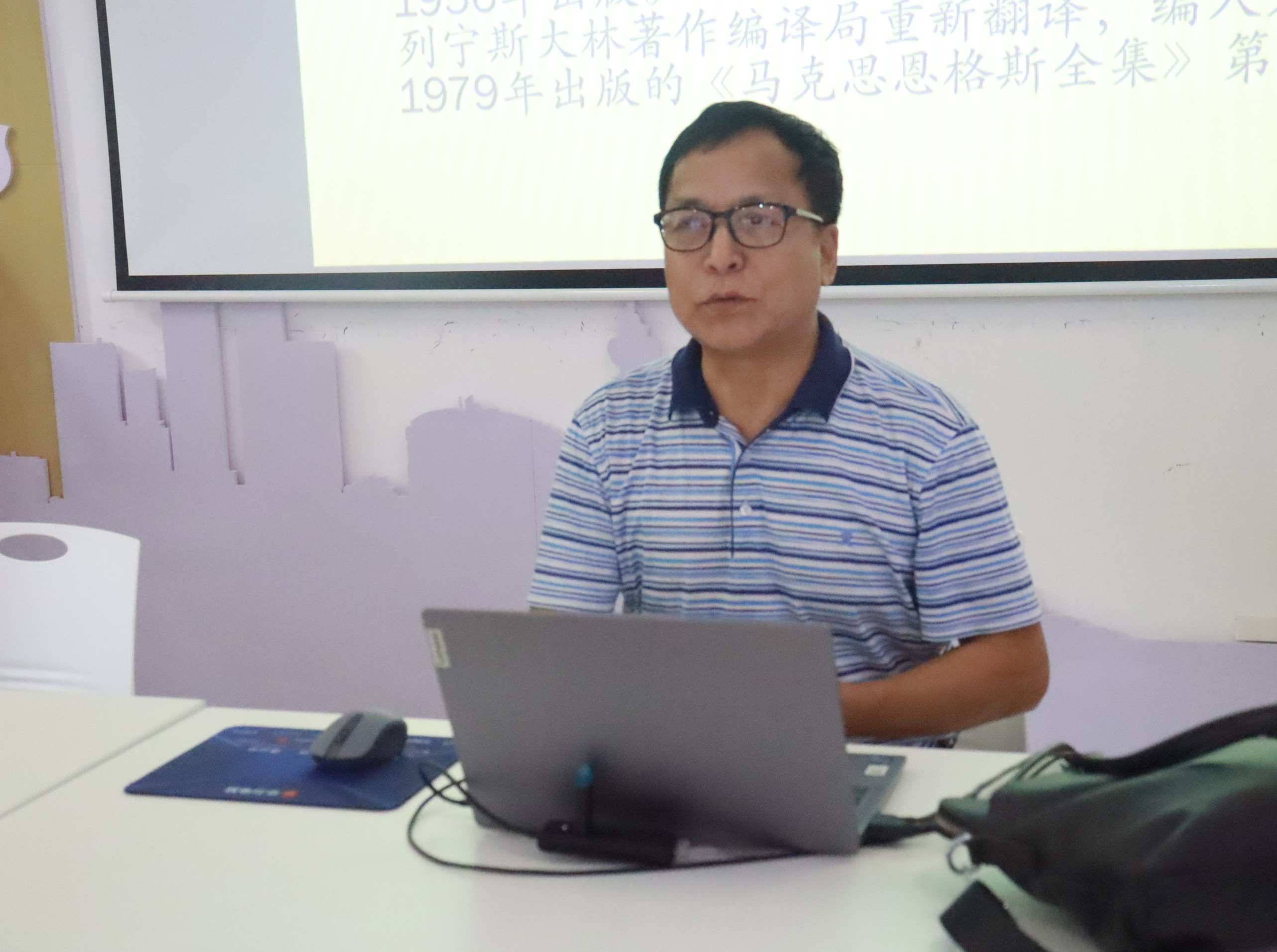 10月11日下午15:30,马克思主义经典著作导读系列活动第三讲在西校区行政楼103如约而至,由韦正球副教授主讲《1844年经济学哲学手稿》,我院副院长罗秋梅主持,学院全体中青年教师参加。