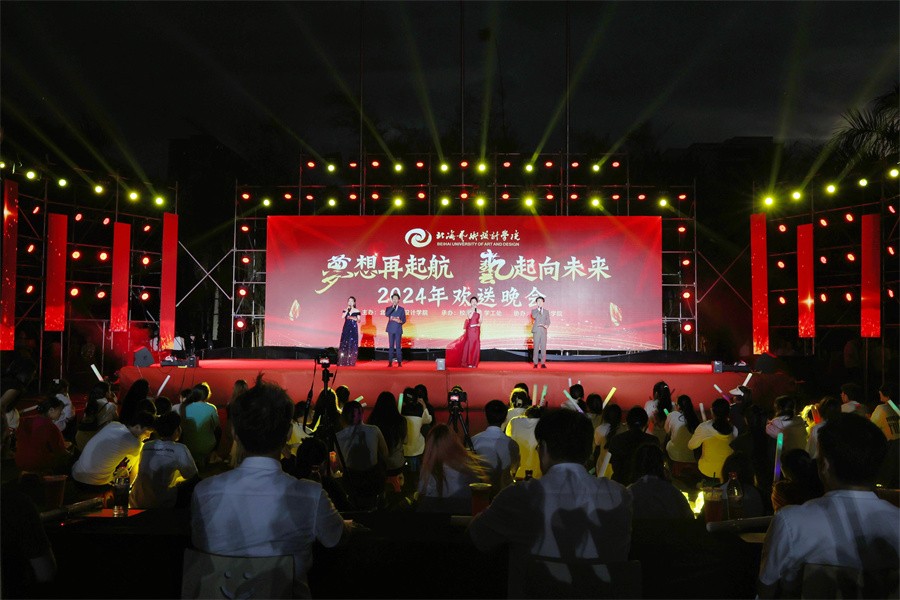 扬帆摇桨日,乘风破浪时。5月31日晚,我校于西校区操场为即将上京逐梦的2021级学子举办了主题为“梦想再启航,‘艺’起向未来”的2024年欢送晚会。校长卢新华,党委副书记彭仁、刘承初,副校长陶立阳、邱杰、刘朝雄、包建明、何煜,总督学王斌及各二级学院领导和各处室负责人出席晚会与广大学子欢聚一堂。