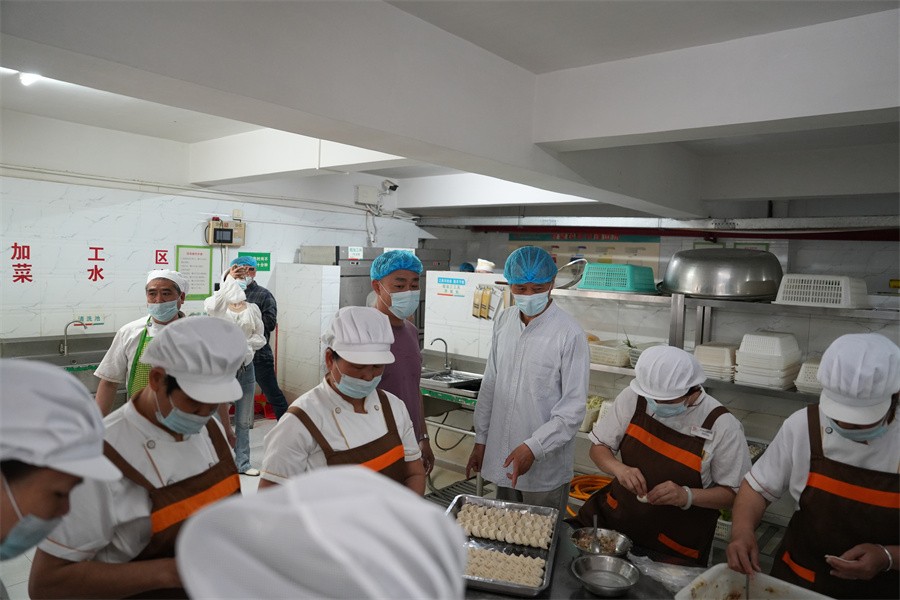 检查组实地检查食堂后厨操作间情况