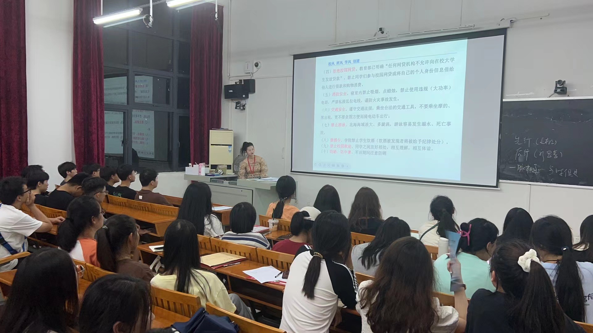 2023级新生认真听取班会内容