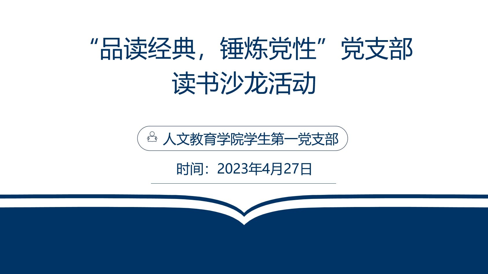 为深入学习贯彻党的二十大精神和响应习近平总书记提出的“爱读书、读好书、善读书”的号召,引导广大师生党员读书尚学、增智明理,形成良好的学习风气和道德风尚,营造良好的读书氛围,北海艺术设计学院人文教育学院学生第一党支部于4月27日晚在觉悟楼204阅览室举办“品读经典 锤炼党性”党支部读书沙龙活动。