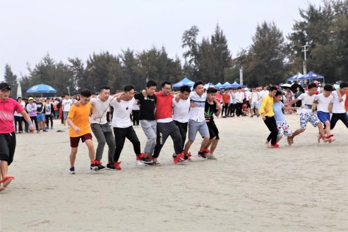 开幕式结束后,赛场上开始了激烈的角逐。本次运动会分为八人九足、水到渠成、高跷接力、拔河、沙滩排球和沙雕比赛六个项目,运动员们用坚持和毅力向我们展示了他们对运动热爱;拉拉队员用他们的声线为队员们喝彩;工作人员们更是忠于职守、用自己的努力为大家提供了保障。