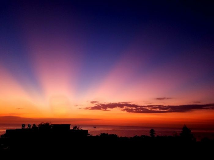 我抓到落日了,在天与海相交的地方。金辉照耀着海面,泛起阵阵光泽。氛围是暖暖的。眺望着海天相交的地方,思念着远方的家。落日寄托着相思,愿第二天它带着我的思念升上高空带回家乡。无边无际的海面像是我无穷无尽的思念。说不清道不明的黄昏落日。望不尽的天涯海角,远处的地方是我的家。