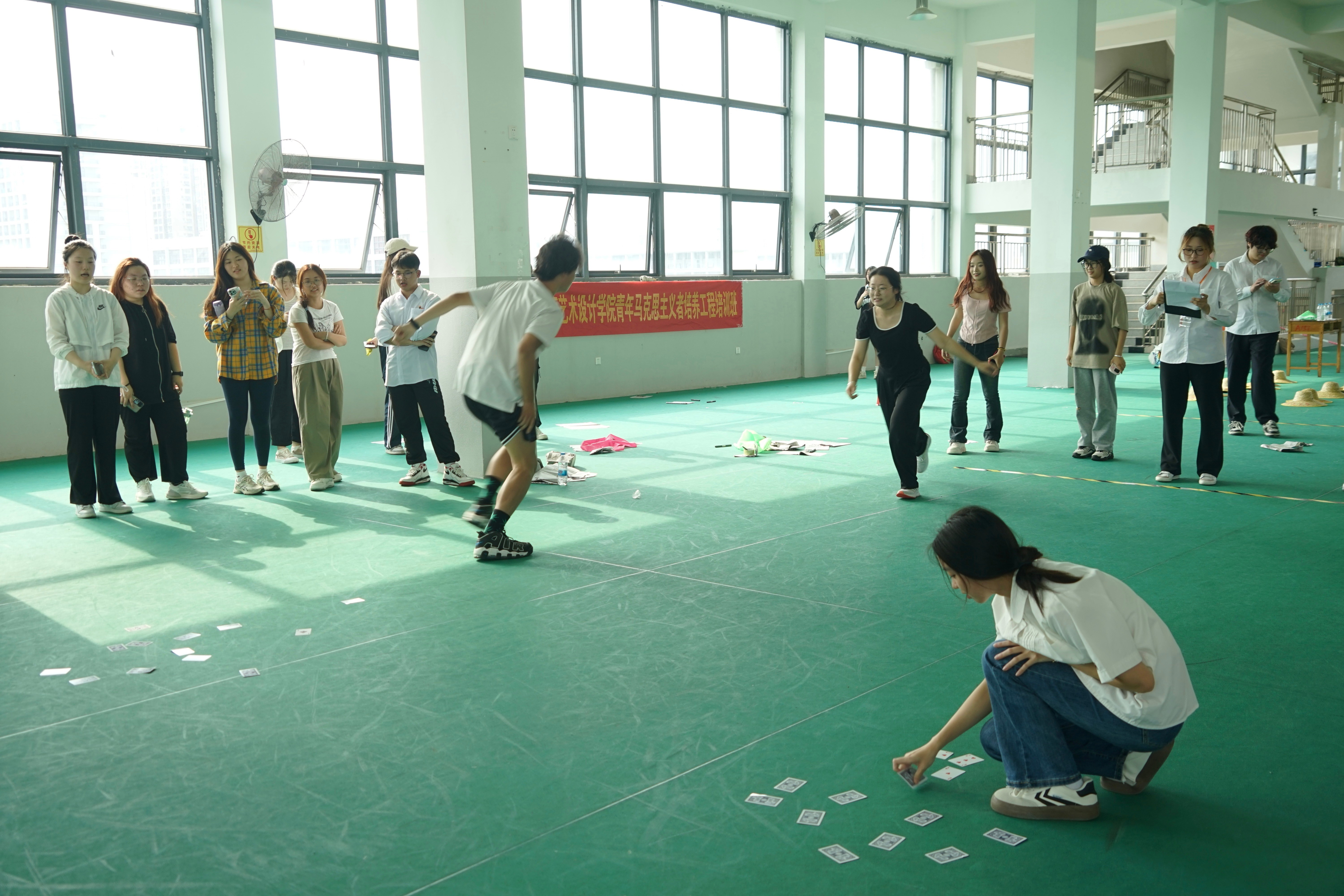 在本次活动中,学员们集思广益、共同合作,尽情挥洒汗水的同时增强了集体荣誉感和自豪感,增强身体素质的同时也提高团队协作能力。期望学员们能够将所学运用到实际当中,努力成为担当大任的时代新人!(王美源/摄)(分组制作团旗与团队标志物)