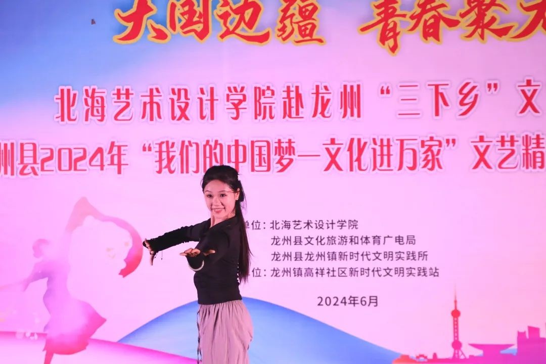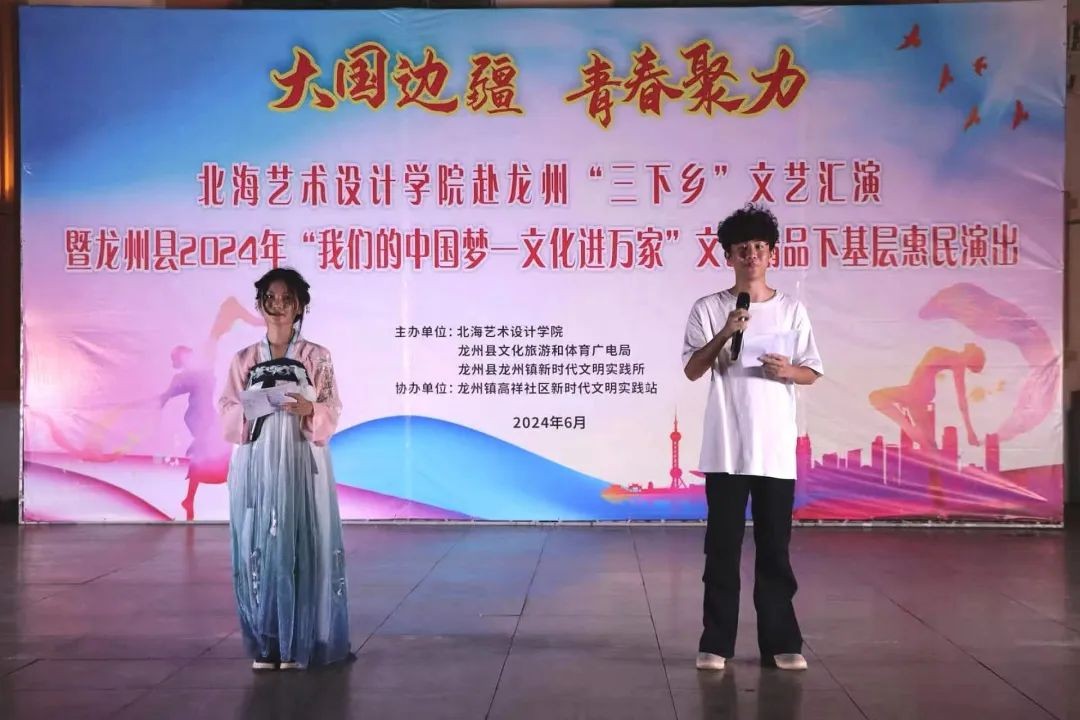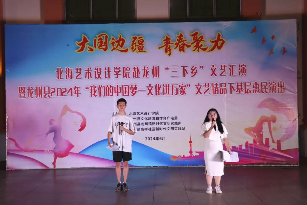 6月21日晚上,北海艺术设计学院赴龙洲“三下乡”文艺汇演暨龙州县2024年“我们的中国梦—文化进万家”文艺精品下基层惠民演出在崇左市龙州镇顺利举行。