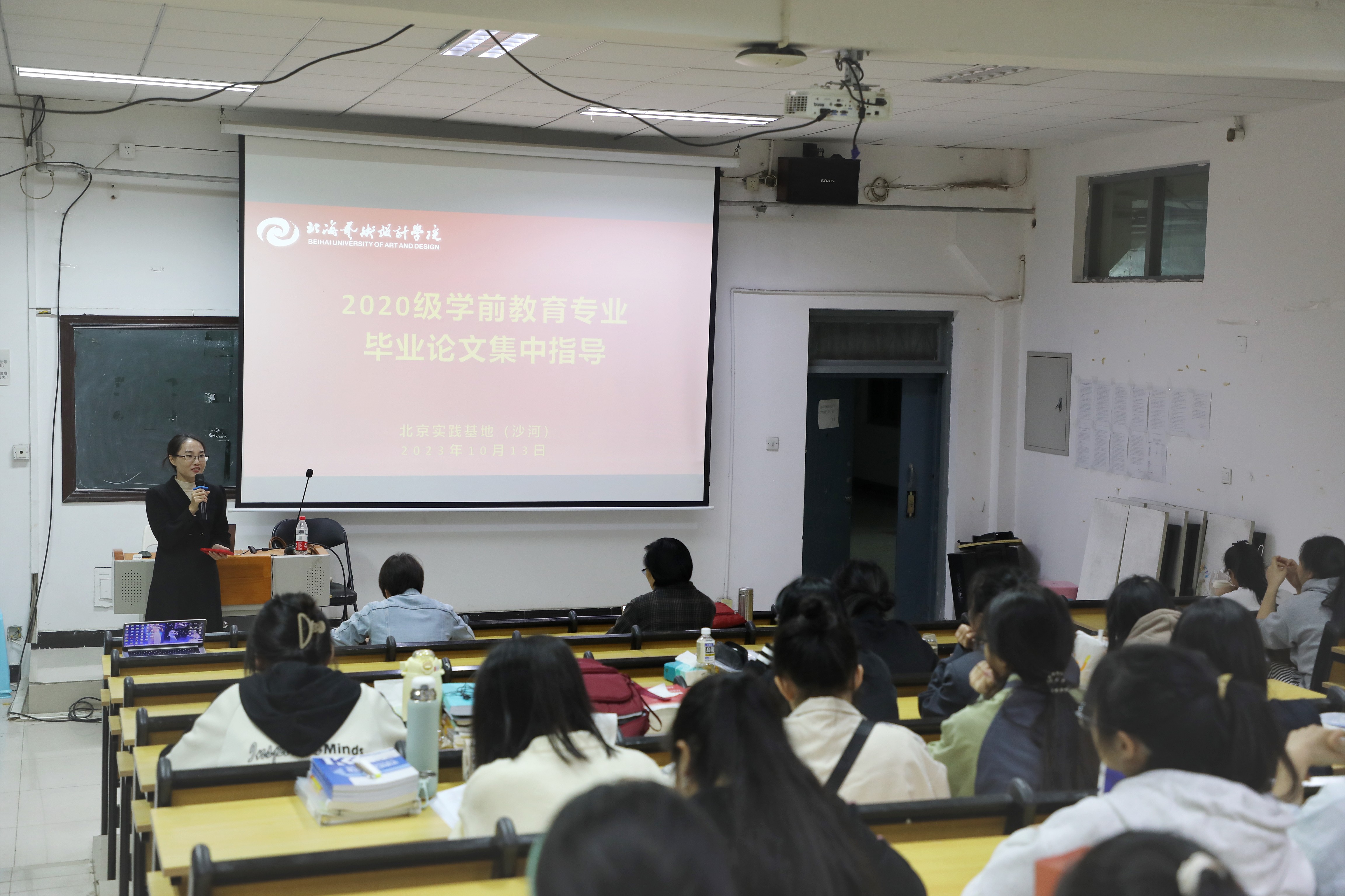 2023年10月13日晚上召集2024届学前教育专业学生进行毕业论文集中指导,针对毕业论文开题答辩出现的普遍性问题进行统一指导,提醒学生注意选题的清晰性与可行性、研究方法的准确性、调研材料收集的全面性、心态上的坚定性,在后续的学习和生活中要高度重视毕业论文研究、撰写工作,多阅读专业文献,积极与论文指导教师沟通,确保毕业论文研究、撰写工作顺利开展。