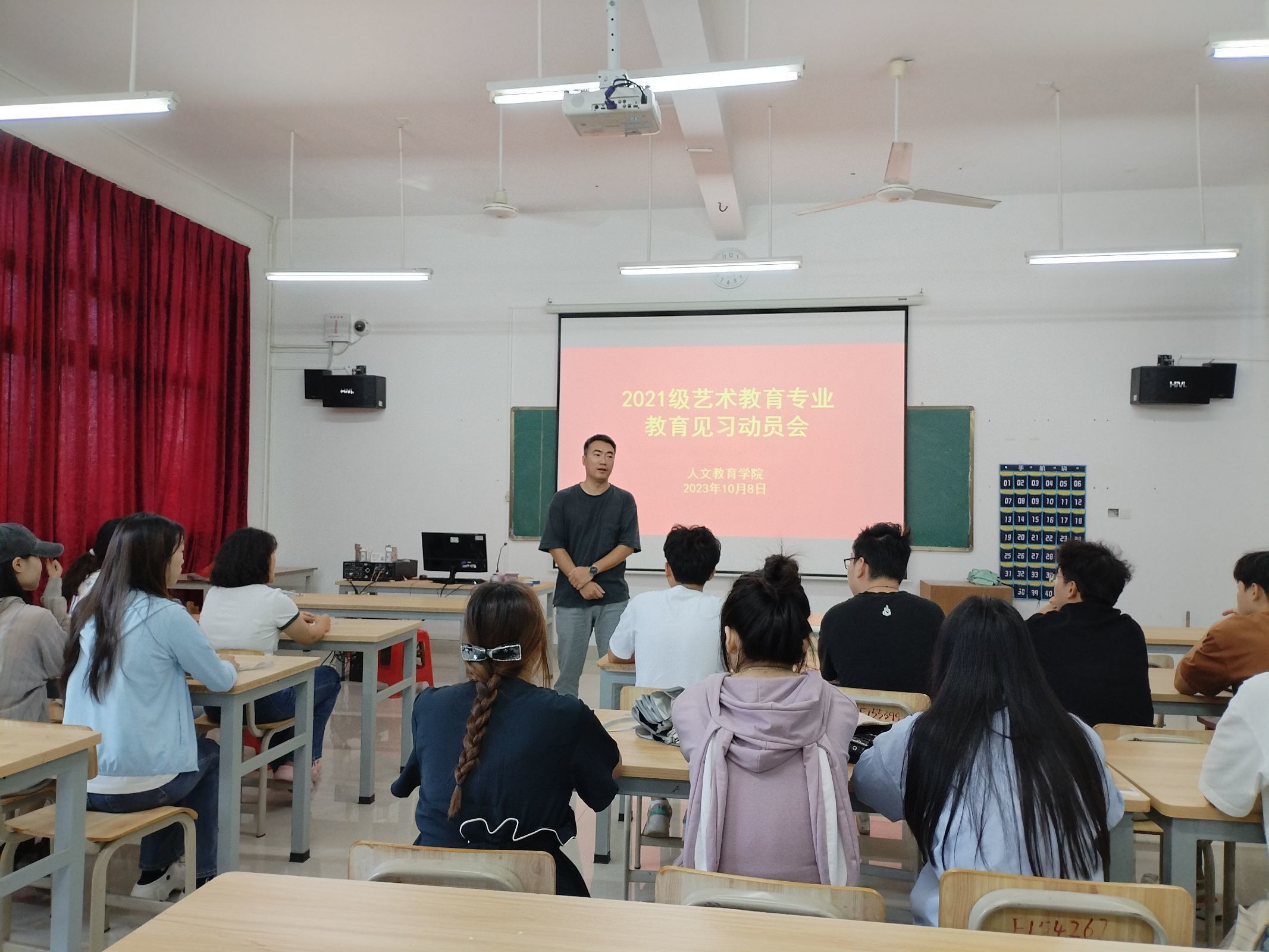 教育见习活动开始前,艺术教育教研室主任孙嘉昕为2021级艺术教育专业学生开展了教育见习动员会,会上为学生们介绍了教育见习的目标和要求,人文教育学院副院长李谦也为见习的学生提出了专业要求与期望。