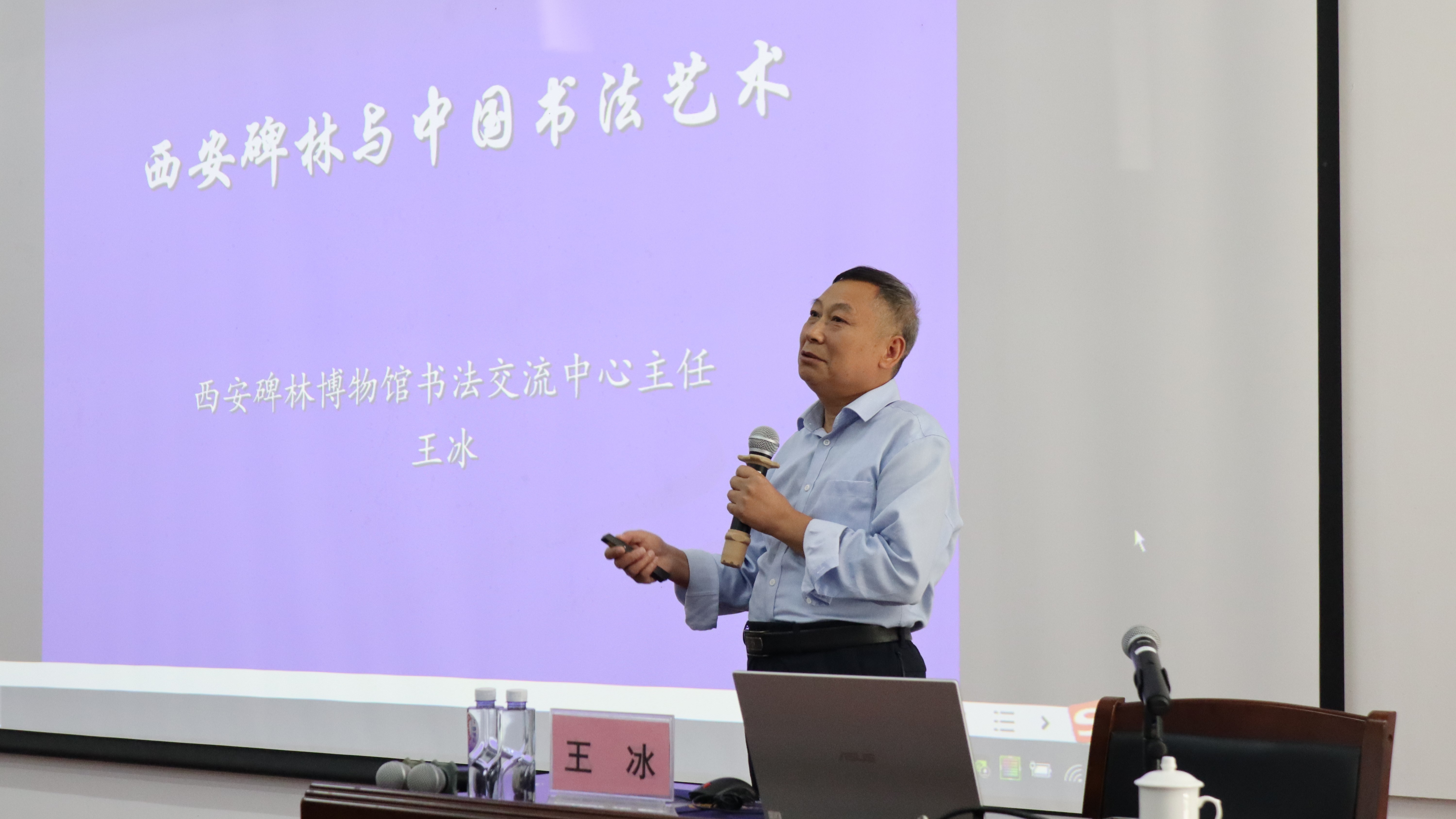 2024年11月7日上午,备受瞩目的名师大讲堂系列活动在伦理楼107教室顺利开展,本次讲座邀请到了西安碑林博物馆书法交流中心主任王冰担任主讲人,为师生们带来了一场主题为“西安碑林与中国书法艺术”的精彩讲座。