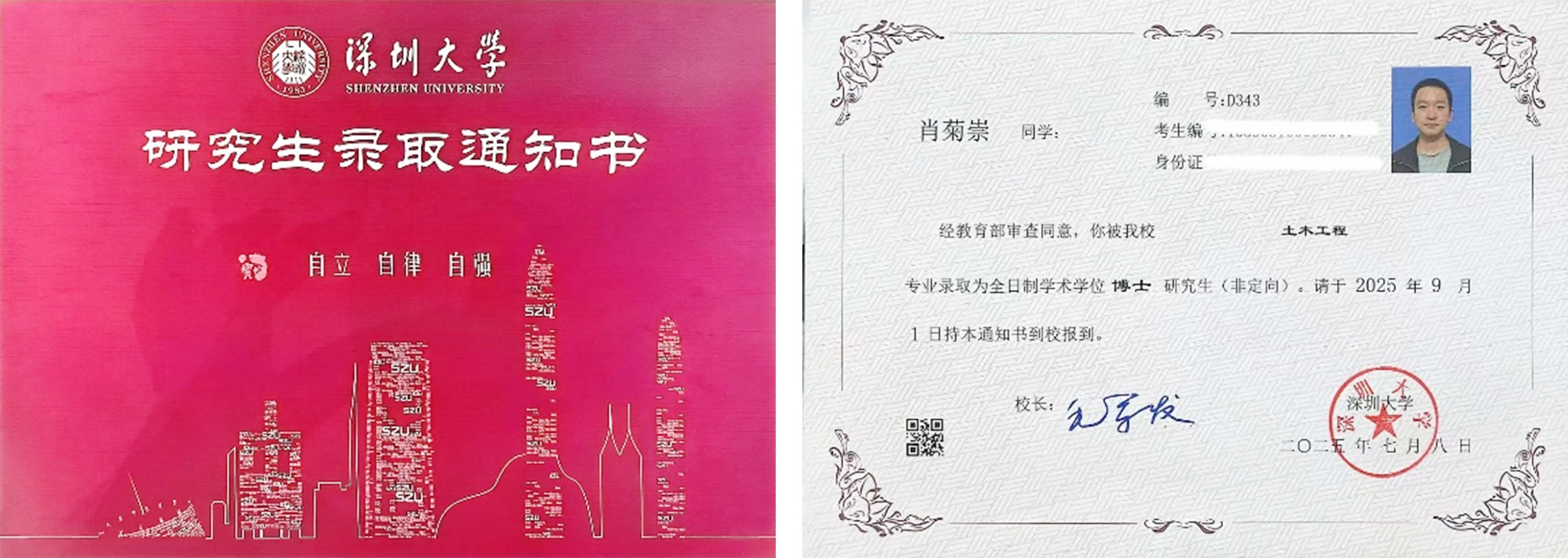 2025年7月,我院毕业生肖崇菊同学收到了期待已久的深圳大学博士研究生录取通知书。作为2018级学子,肖崇菊在2022年从我校本科毕业后,便考入重庆交通大学土木工程学院交通运输专业,攻读硕士研究生。在硕士期间,发表SCI论文3篇,分别发表于国际期刊《Construction and Building Materials》《Powder Technology》和《Engineering Fracture Mechanics》,分别为中国科学院一区TOP期刊、中国科学院二区TOP期刊和中国科学院二区期刊。
