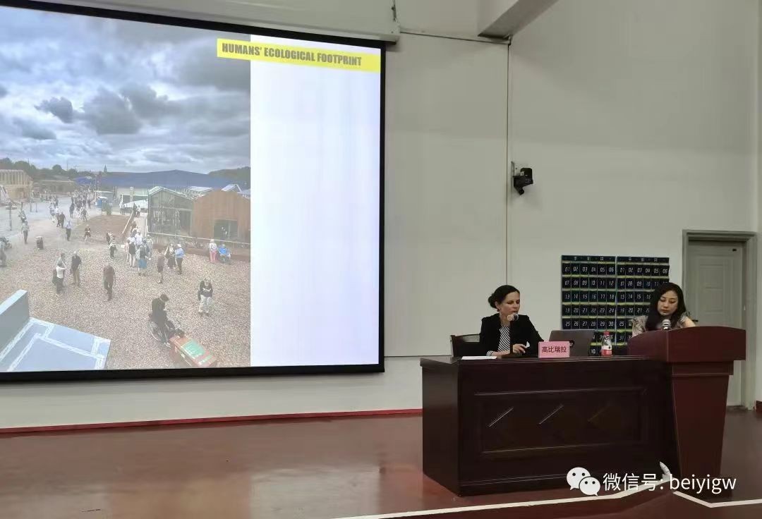 随后,高比瑞拉教授阐述了佩奇大学当代建筑的教育趋势及学校的教学核心,概括了欧洲建筑的发展。教授列举了2019年匈牙利主办国际竞赛且佩奇大学取得优秀成就的例子,阐述了佩奇大学注重低预性,即强调绿色能源的经济价值。另外,她指出,可持续发展是匈牙利的热门话题。佩奇大学的师生将乡村景观与现代艺术结合,在建筑上,考虑到了房屋的朝向、自然光、能源等,对季节也更敏感,考虑到了气流,采光等。学生还创造了第二层结构,将材料回收再利用,简化这层回收材料的构成,结合高科技工艺,可用于收集雨水,对实现可持续发展有重大意义。这些理念最后成为现实,这让学生掌握建造技术的同时更全面地去看待国际形势。教授鼓励我们在学习专业知识的同时也要注重创新创造,用发展的眼光去看待问题。
