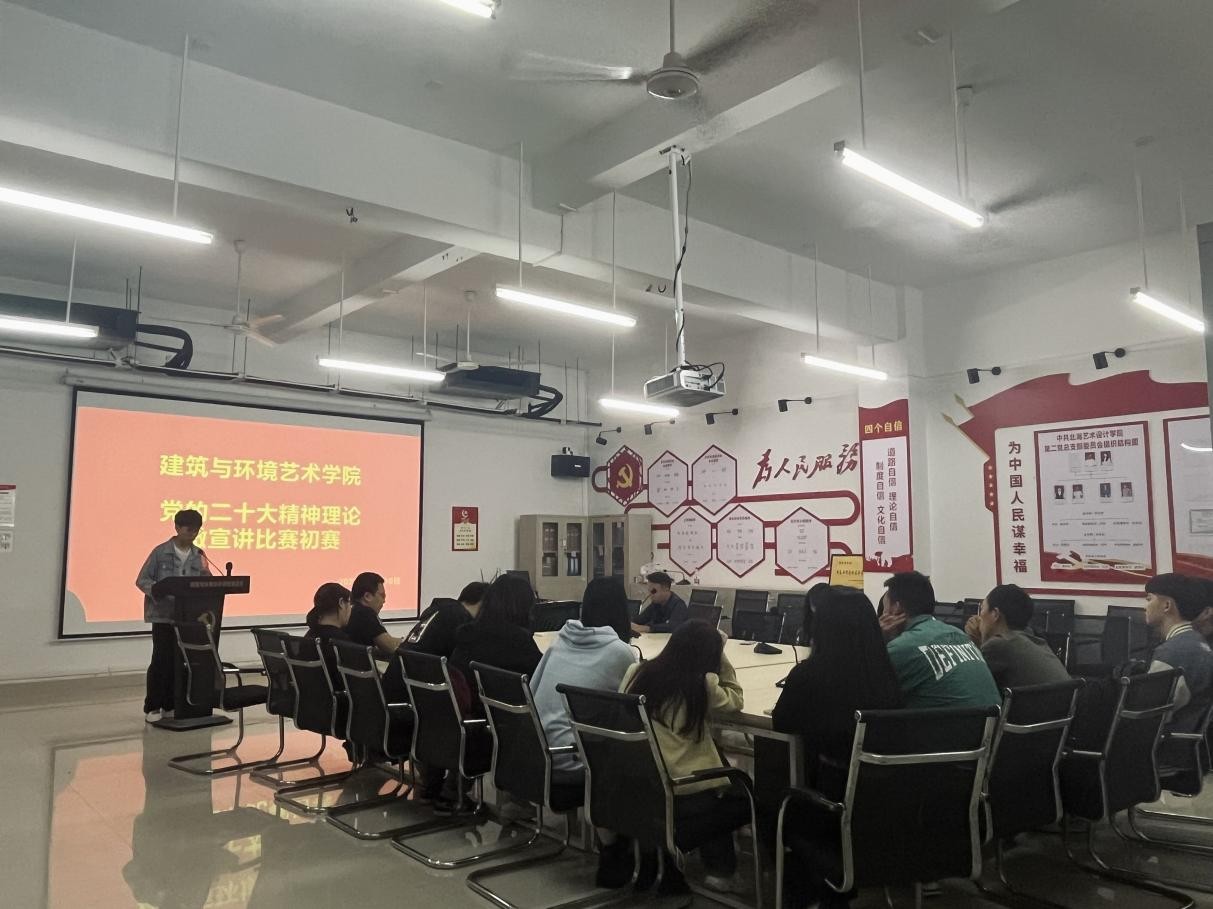 为全面贯彻落实习近平总书记对广西“五个更大”重要要求和视察广西“4·27”重要讲话精神,引导全体学生学思践悟党的二十大精神,深刻领悟“两个确立”的决定性意义,增强“四个意识”,坚定“四个自信”,坚决做到“两个维护”,推动党的创新理论走进青年、深入人心,建筑与环境艺术学院第二党总支于2023年10月10日在公德楼507开展党的二十大精神理论微宣讲初赛,本次初赛共计17人参加,学生第一党支部书记刘杰、第二党支部书记谭积钻进行总结点评。
