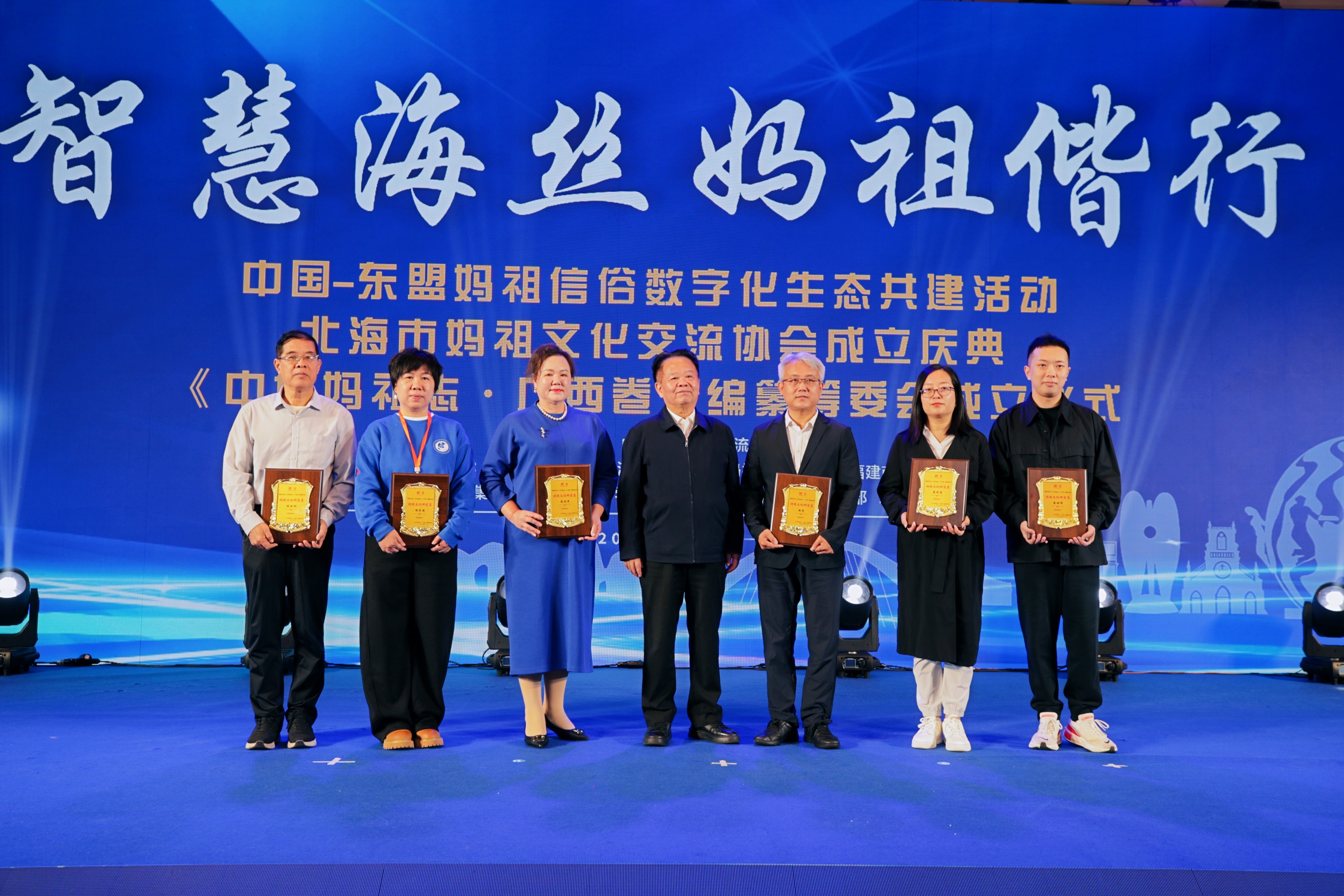 11月24日,广西北海妈祖文化交流协会成立庆典在北海香格里拉大酒店隆重举行,《中华妈祖志・广西卷》编纂筹委会同步揭牌。柬埔寨、新加坡、马来西亚等东盟国家妈祖社团及加拿大、山东、浙江、福建等国内外妈祖文化机构代表齐聚现场,共同见证这一传承海丝文脉、深化跨境交流的文化盛事。建筑与环境艺术学院副院长蔡世伟及教师代表陈欧阳、冀智清受邀出席活动,深度参与妈祖文化传承与发展合作。