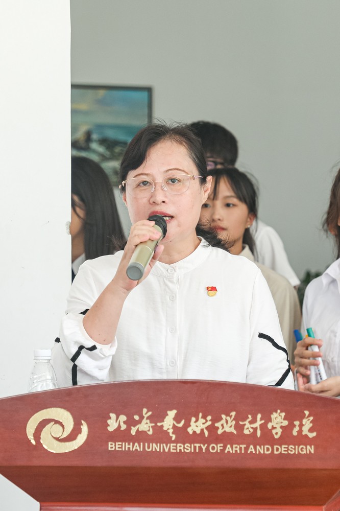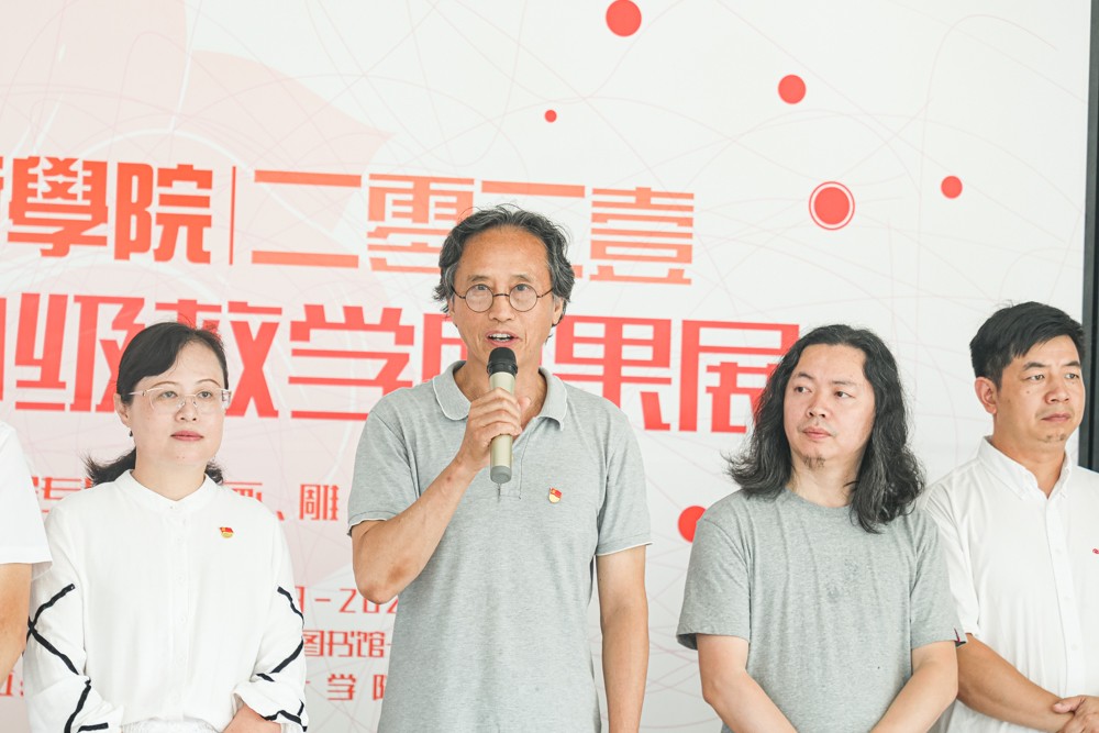 开幕式开始第一项,龚为副院长为大家介绍本次展览活动简况。龚为副院长表示,在成果展开始之前要感谢各位老师的付出。在这三年多的教学过程中,大三同学都收获颇丰。每一幅作品都是同学们的坚持和努力的结果,也包含了专业老师的辛勤耕耘。这次的成果展是美术学院经过精心筹备,展示同学们这些年来在学习上的积累和成果。美术学院一直致力于引进优秀资源,为大家建立良好的教学环境。这次展览不仅希望大三学子能看到自己的满意答卷,也激励学弟学妹们努力奋斗,也希望学院培养出更多优秀的人才。
