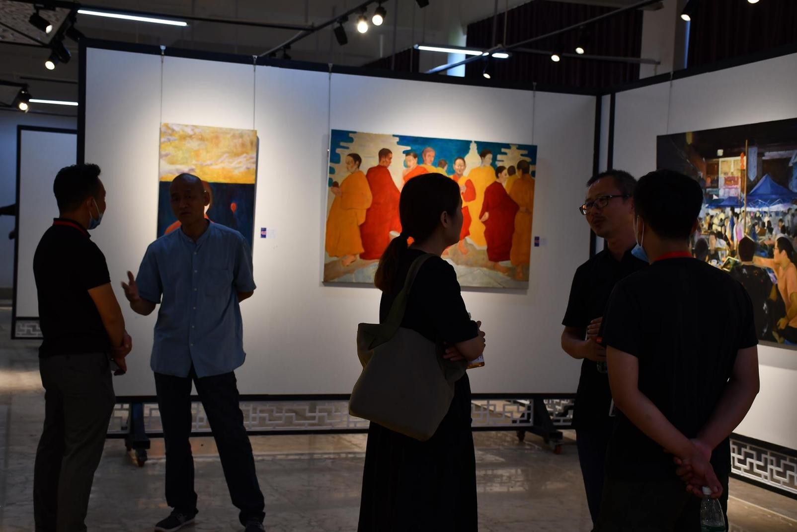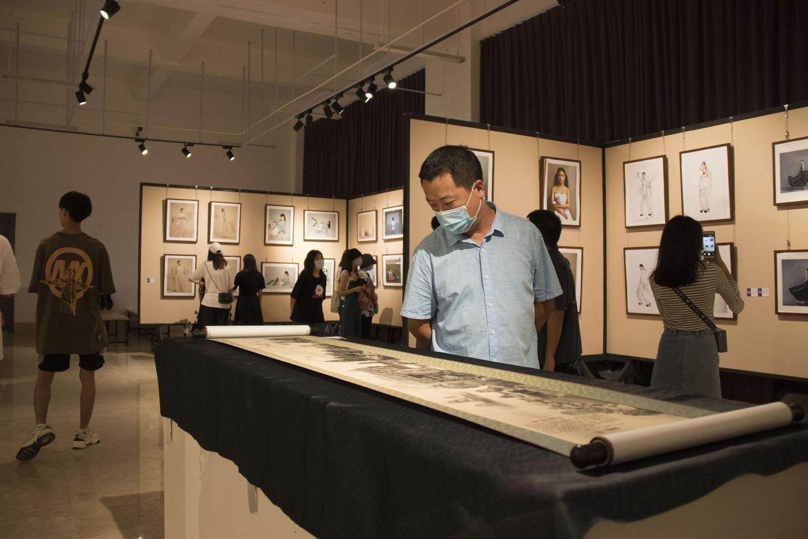 开幕式结束后,由美术学院常务副院长龚为以及美术学院教师陪同各位校领导进行参观,同时校领导点评了展览作品并提出了很好的建议,对之后的教学方向有很好的帮助。(王云龙 摄)