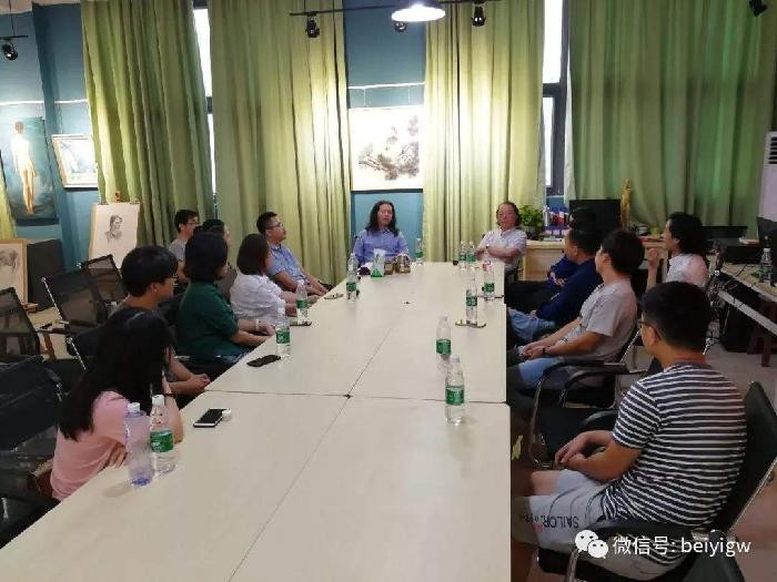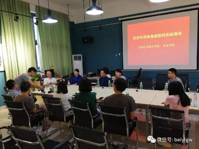 下午16:30分,曲教授及其夫人张柳青还莅临绘画教研室参加了由胡胜副校长主持、美术学院副院长龚为、教研室主任张湘中、教务办主任肖玺和青年教师共同参与的教学研讨活动。研讨活动中,曲教授分享了自己多年的从教经验,与各位老师讨论了美术学院在教学、科研以及未来的发展方向的问题,提出诸多良见。随后,曲教授浏览了青年教师创作的优秀作品,并为青年教师答疑解惑,还以其夫人张柳青为例,向青年教师讲述了艺术创作中该如何学习提高,通过与曲教授的交流,我校青年教师对美术教学的理解更加深刻,进一步推动我校美术专业的发展。(陈建江 摄)