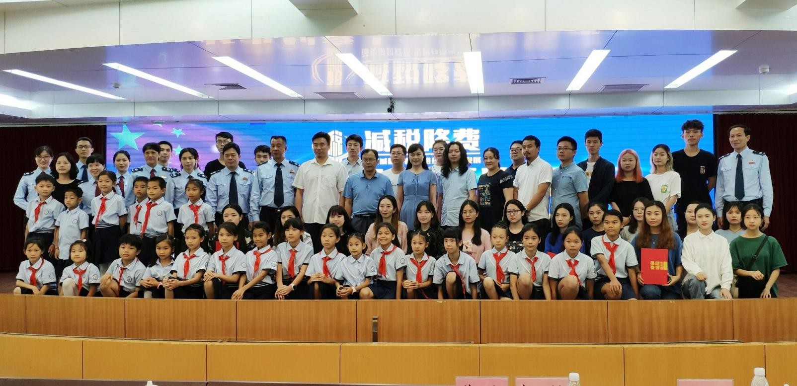 5月20日上午九点整,我校参加由北海市税务局举办的“减税降费”艺术创意作品大赛颁奖典礼在北海市税务局大厅举行。本次创意大赛美术学院成绩喜人,共荣获一等奖一名,二等奖一名,三等奖二名,优秀奖5名,优秀指导老师奖一名的优异成绩。本次大赛颁奖典礼是由北海市税务局承办,优异的成绩极大的促进了我院学生的自信心和“知识与社会建设接轨”的先进教学理念。本次大赛美术学院常务龚为教授受邀参加颁奖典礼,并为获奖学生与教师颁奖。(王云龙 摄)