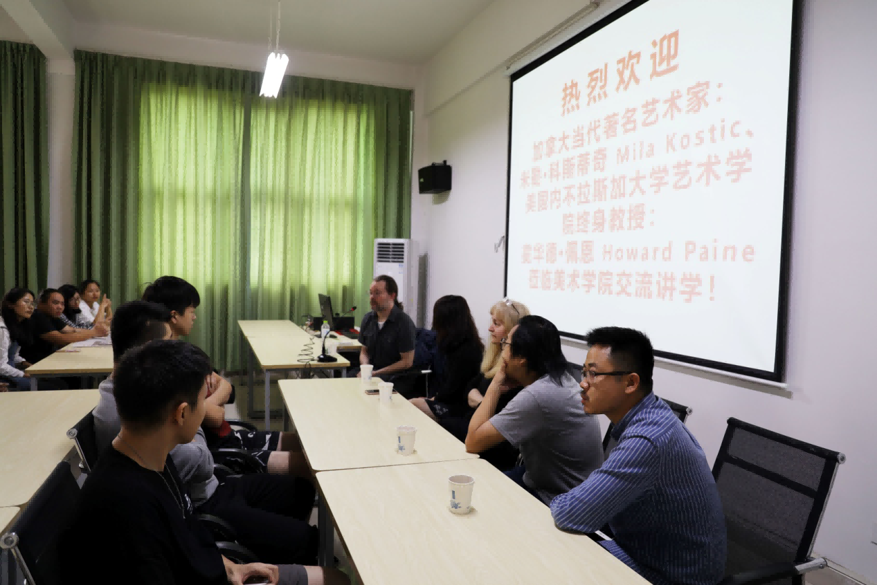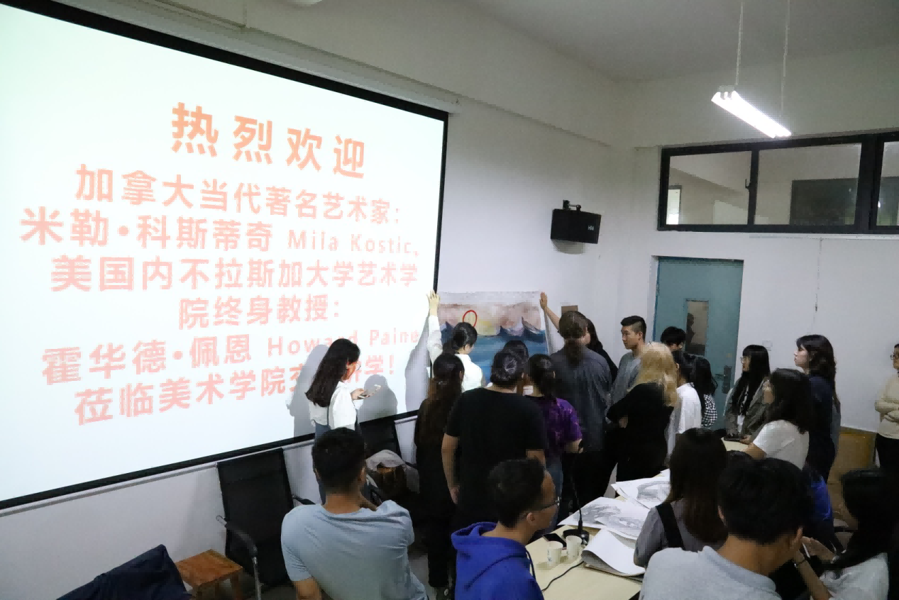 随后,美术学院领导为此专门请米勒·科斯蒂奇(Mila kostic)与霍华德·佩恩(Howard paine),同绘画专业同学进行零距离的指导和交流。同学们认真聆听艺术家的创作趣事、艺术观点、了解到了当代最前言艺术信息,拓展了视野,期间很多同学积极发言提问,艺术家对于学生提出的问题都进行了认真细致的解答。