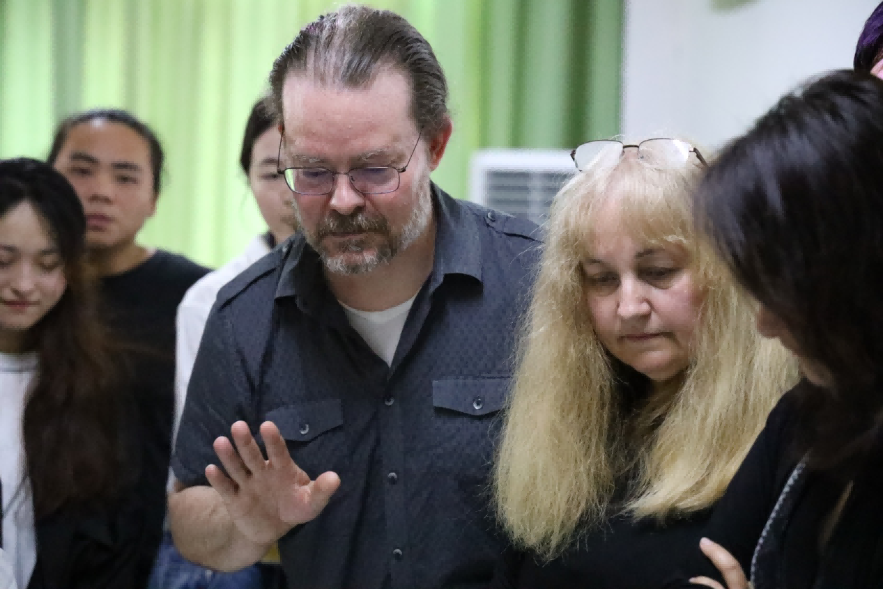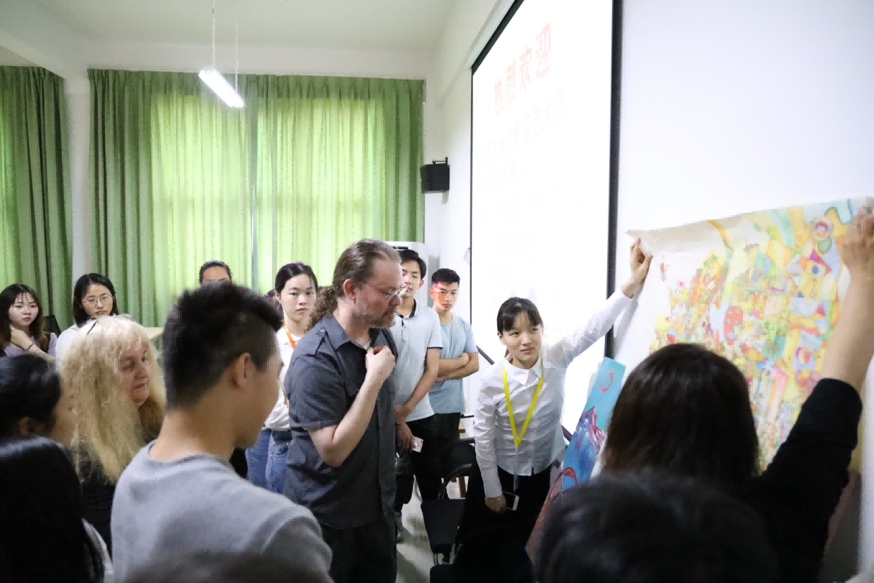 最后,学生们拿出平时最优秀的作品请艺术家与教授观看及指导。艺术家们对每位同学的作品都细心指导点评。针对学生作品中的不足予以指出,对于优秀的地方则鼓励其继续进行的提升。
