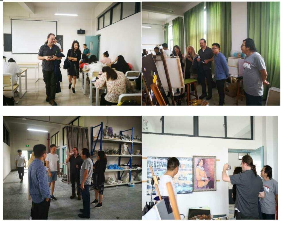 首先在龚为副院长的介绍下,成斌副院长引领领外国艺术家一同参观了绘画专业学生作业展,雕塑专业实训教室与绘画专业实训教室。