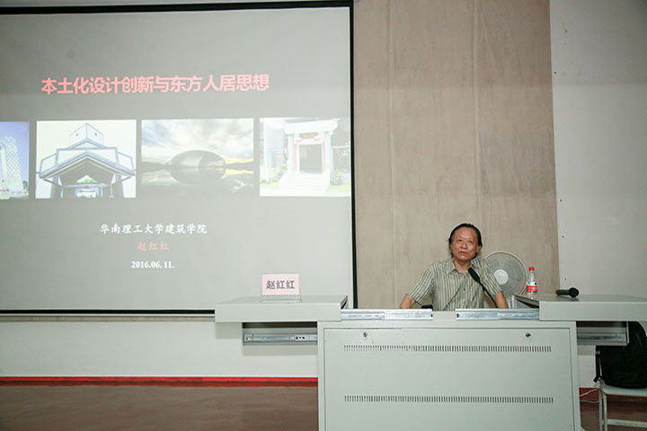 2016年6月11日19:20,华南理工大学建筑学院院长、博士生导师赵红红教授莅临我院“名师大讲堂”,给全院师生带来题为《本土化设计创新与东方人居思想》的讲座。