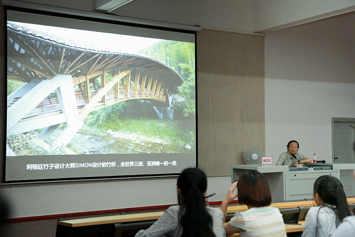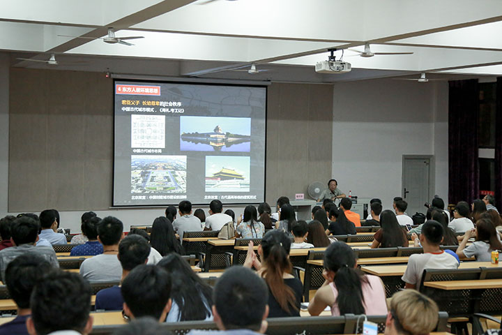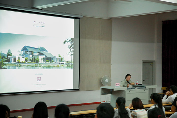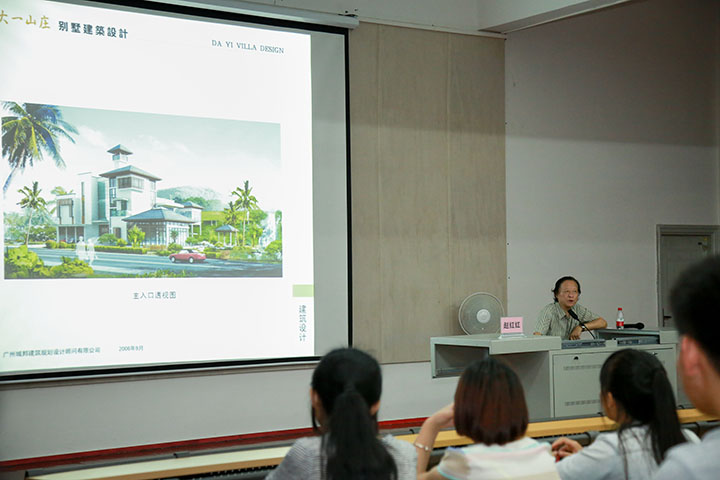 赵红红教授从中国城市化的进程、经济全球化的影响、东方人居思想、本土化的设计潮流、地域化的设计创新五个方面进行分析探讨,给在座师生展示了许多经典的案例,并就如何对本土文化进行传承和创新进行了诠释,提出了独到的观点和看法。在讲座中,赵教授指出现代建筑设计的不足,即设计缺乏创新,千城一面、千楼一面的现象层出不穷。同时赵教授通过广州南昆山十字水生态度假村细讲解了地域化建筑设计的特征,向我们阐述了现代建筑设计的发展方向,即在传承传统文化的基础上加以创新深化,融入现代化设计的元素。在最后,赵教授激励中国的建筑师要为走向世界做理论准备,给我院学生树立了新的奋斗目标。