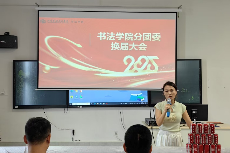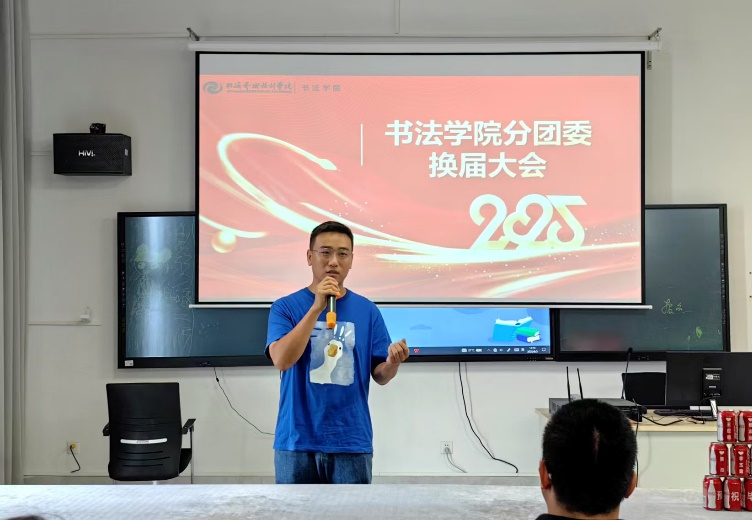 2025年6月3日,在艺德楼507书法教研室隆重举行书法学院分团委换届大会,大会在庄严的国歌声中拉开帷幕。