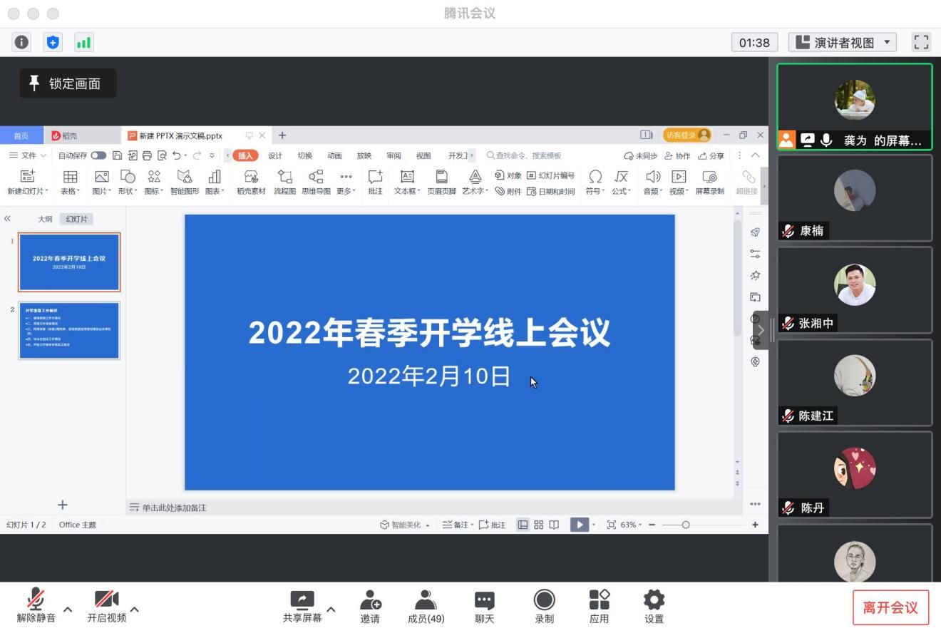 2022年02月10日,周四,天气晴。上午9点,美术学院于腾讯会议开展美术学院开学工作线上会议,会议由副院长龚为主持,议定如下事项: