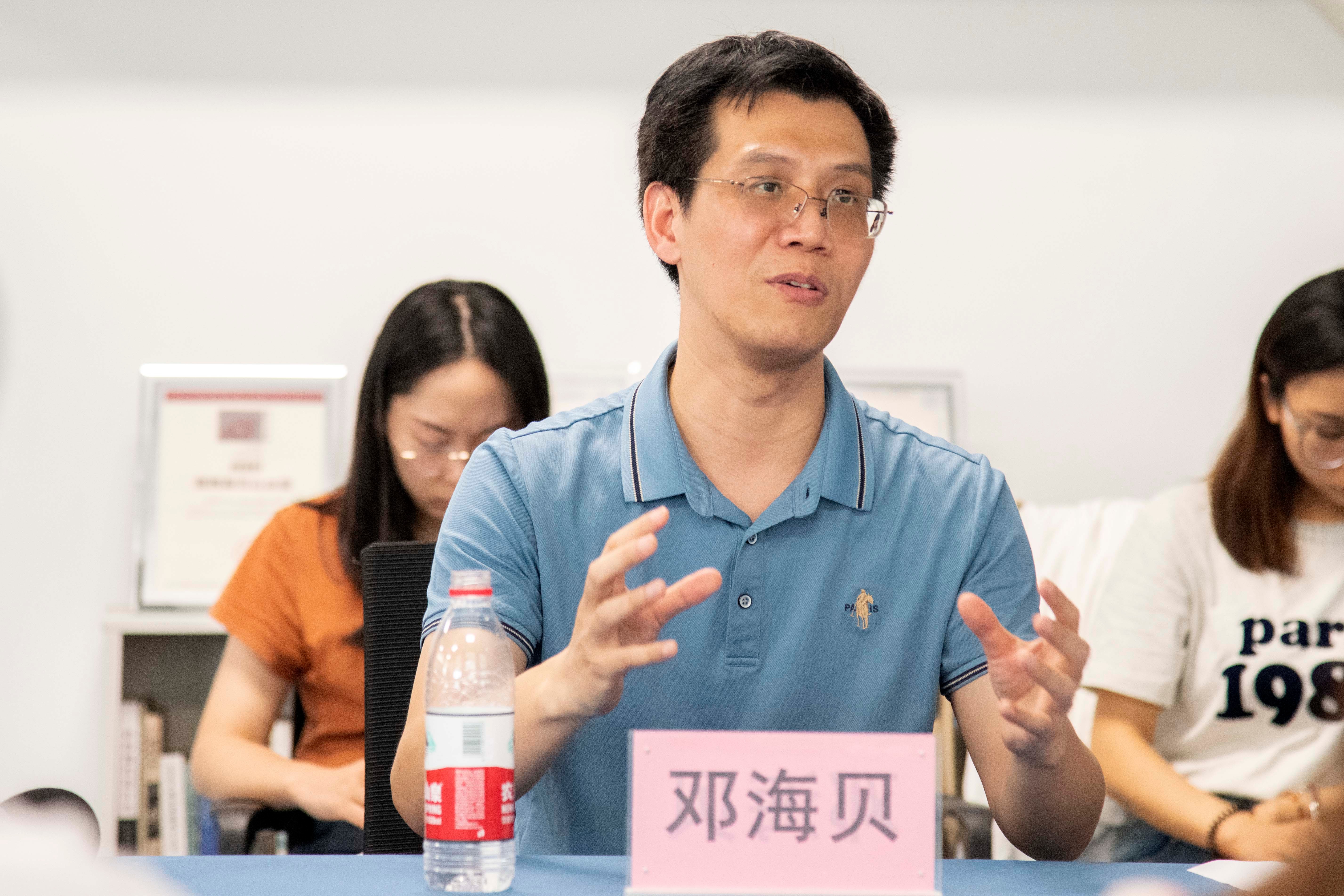 首先,李林平院长介绍了邓海贝副教授的基本情况,邓海贝副教授在中国国际“互联网+”大学生创新创业大赛和全国大学生广告艺术大赛中取得优异成绩,他不仅指导学生获得了众多国家级和区级奖项,还多次被评为国家级和广西赛区优秀指导教师。此次受邀来我院,将带来丰富的参赛经验和深刻的行业见解,供我们广大青年教师借鉴和参考。