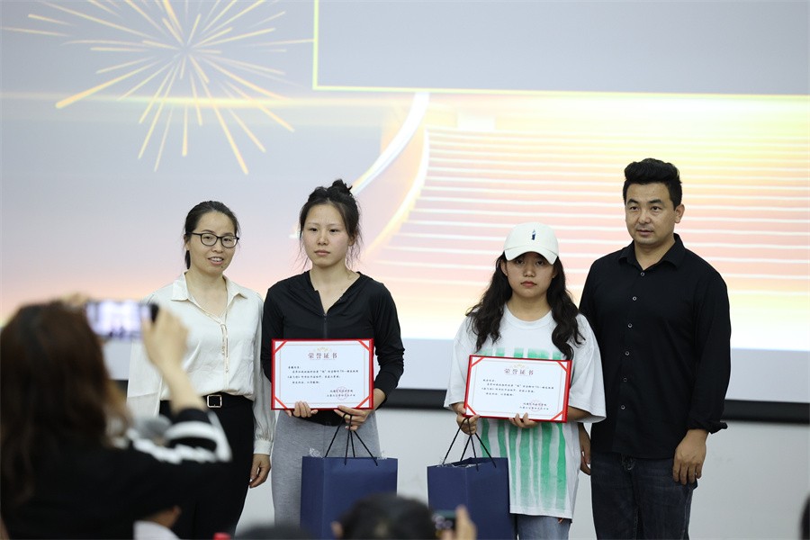 获奖同学与领导合影